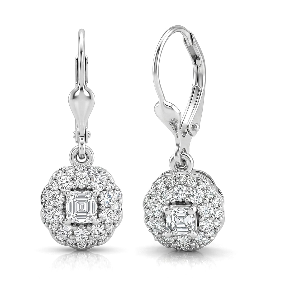 Luxuriant Lab Grown Diamond G-H SI 1.30 ctw Radiant Sunburst Earrings in Rhodium Over Sterling Silver
