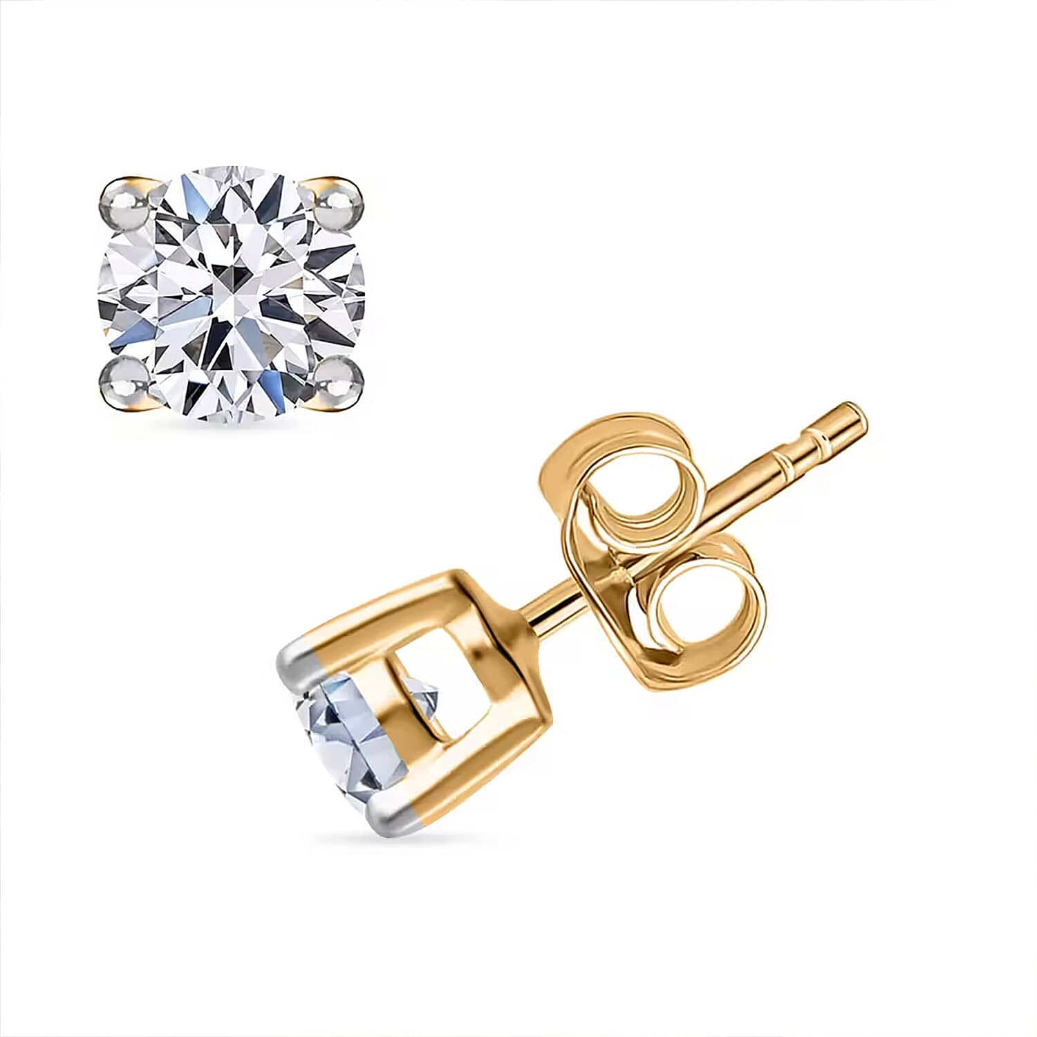 Luxuriant Lab Grown Diamond G-H SI 1.50 ctw Solitaire Stud Earrings in Vermeil Yellow Gold Over Sterling Silver