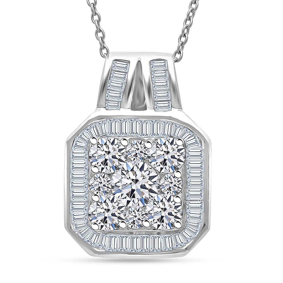 Luxuriant Lab Grown Diamond G-H SI 2.00 ctw Empire Geometry Pendant Necklace in Rhodium Over Sterling Silver 20 Inches