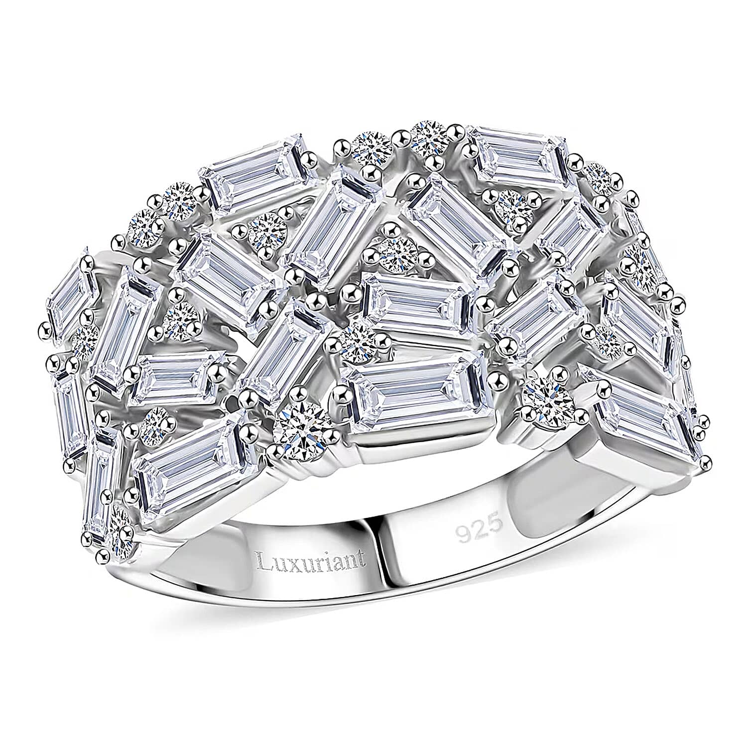 Luxuriant Lab Grown Diamond G-H SI 2.00 ctw Firecracker Ring in Rhodium Over Sterling Silver (Size 10.0)