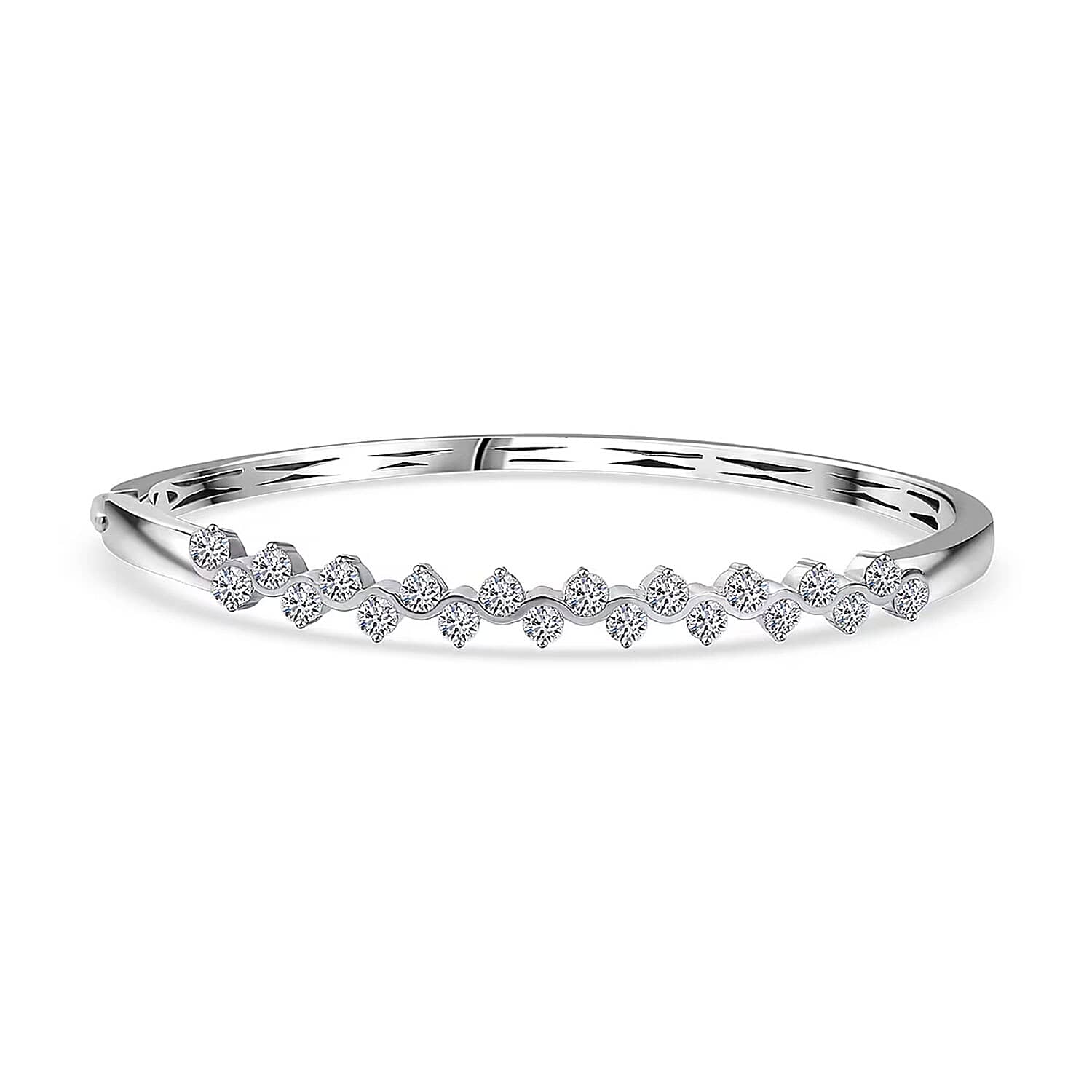 Luxuriant Lab Grown Diamond G-H SI 2.20 ctw Rolling Waves Bangle Bracelet in Rhodium Over Sterling Silver (7.25 In)