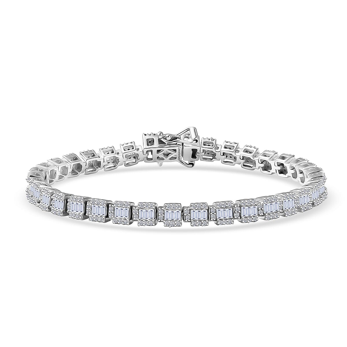Luxuriant Lab Grown Diamond G-H SI 3.10 ctw Matrix Block Bracelet in Rhodium Over Sterling Silver (7.25 In)