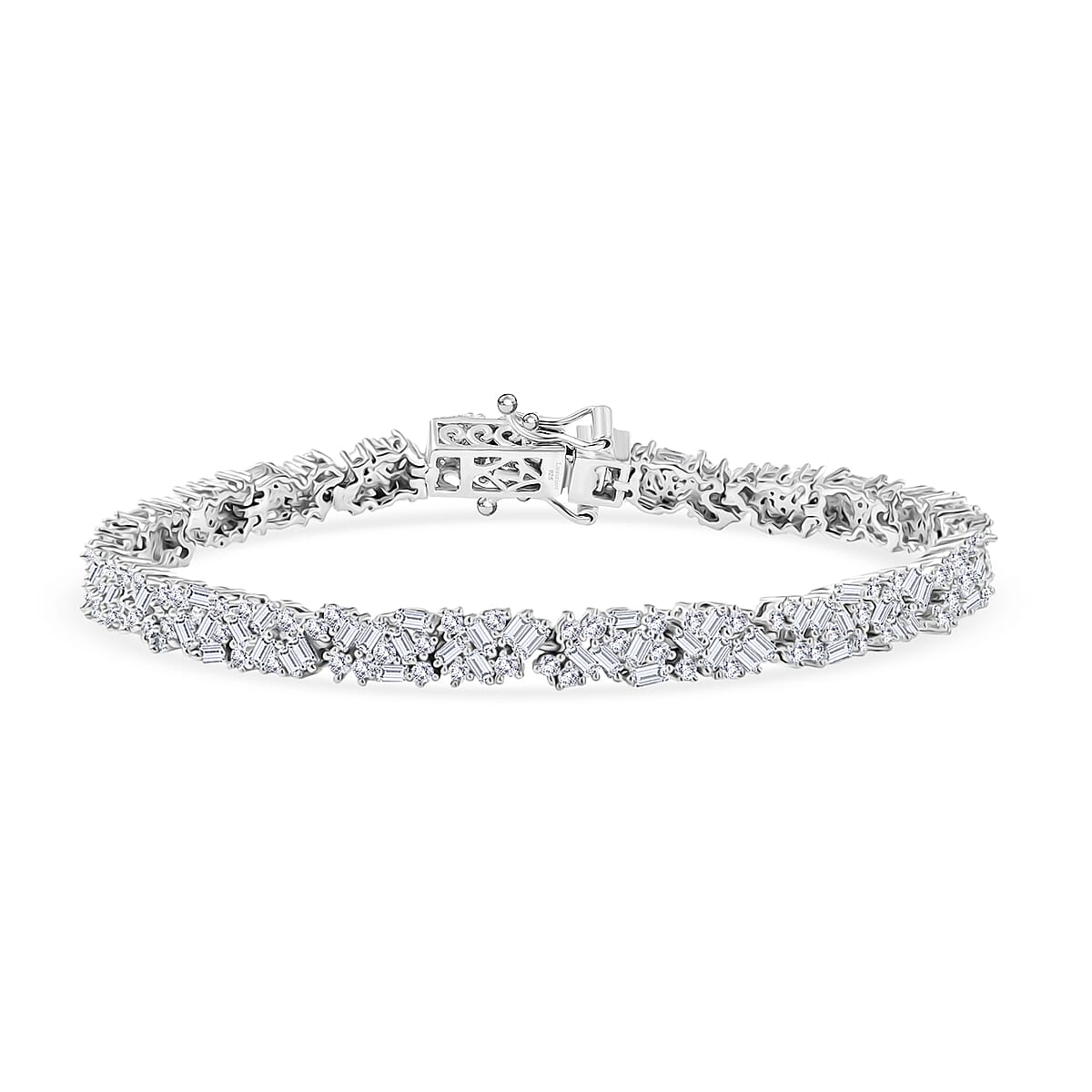 Luxuriant Lab Grown Diamond G-H SI 4.00 ctw Deco Weave Bracelet in Rhodium Over Sterling Silver (7.25 In)