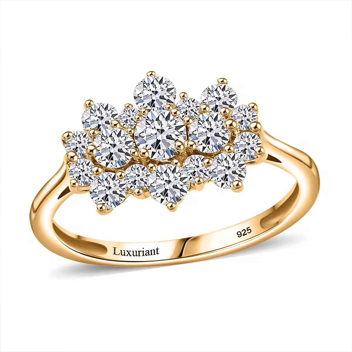Luxuriant Lab Grown Diamond (G-H, SI) Boat Shaped Ring in 18K Vermeil YG Over Sterling Silver (Size 5.0) 1.00 ctw
