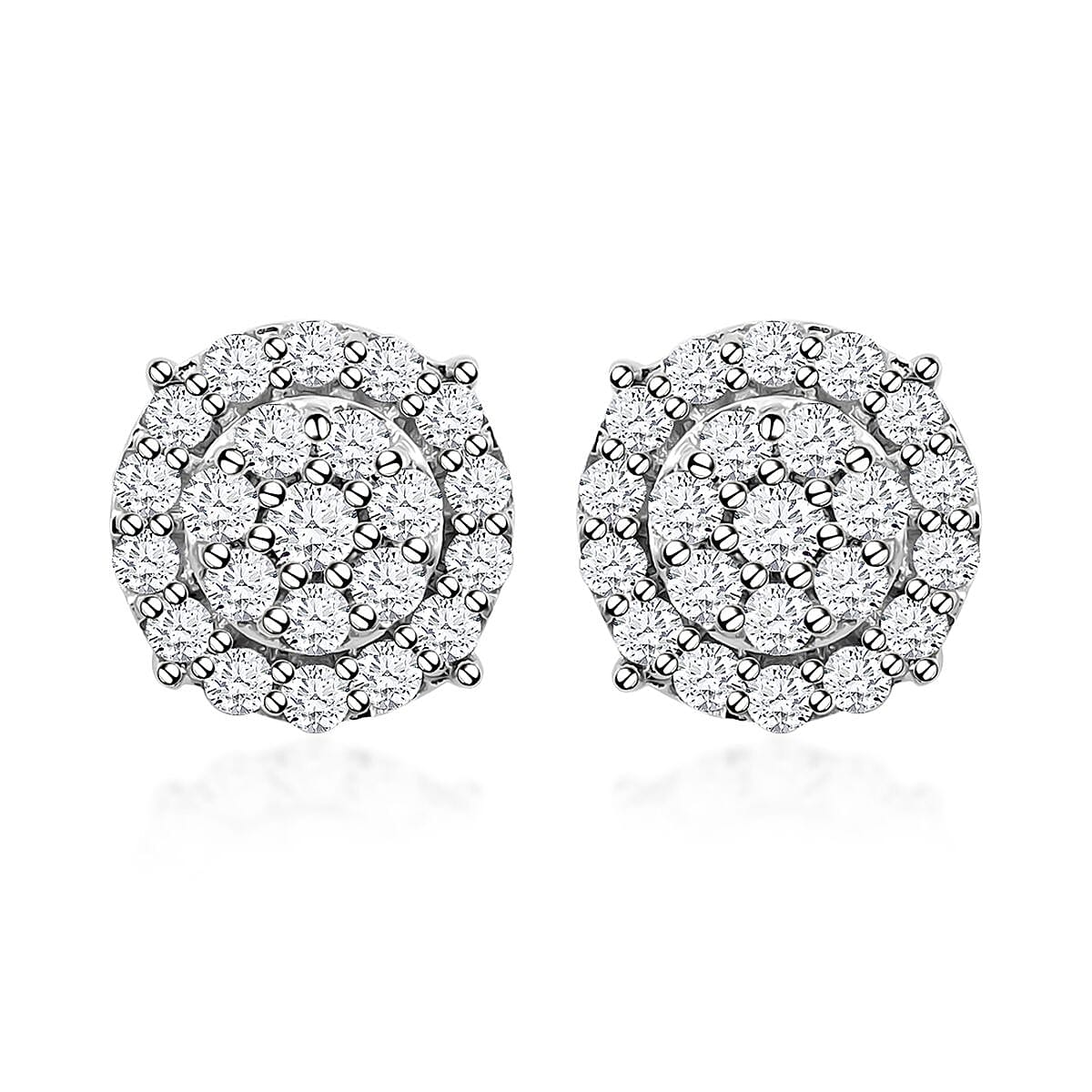 Luxuriant Lab Grown Diamond G-H SI Double Halo Stud Earrings in Platinum Over Sterling Silver 0.50 ctw