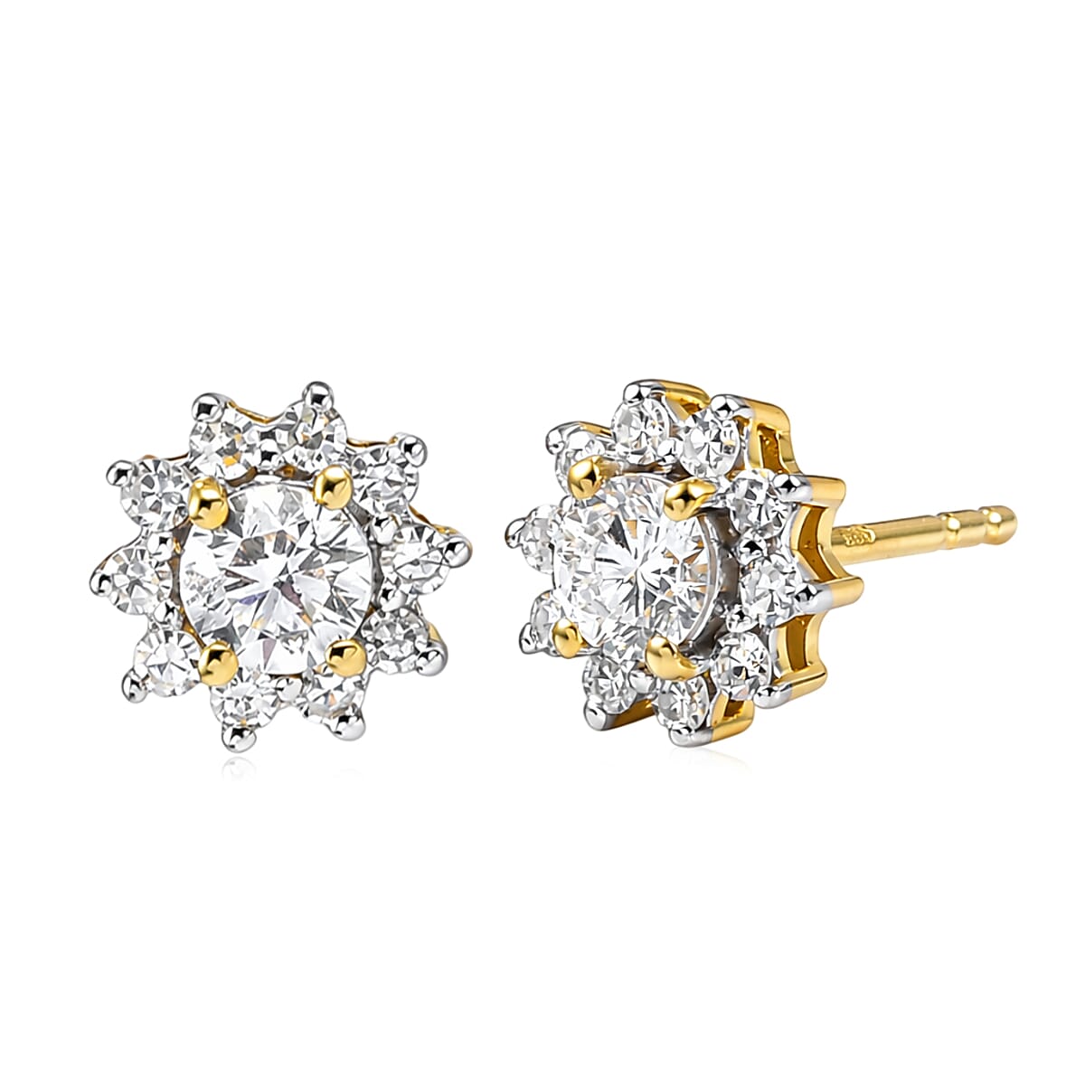 Luxuriant Lab Grown Diamond (G-H, SI) Floral Earrings in 18K Vermeil YG Over Sterling Silver 0.90 ctw