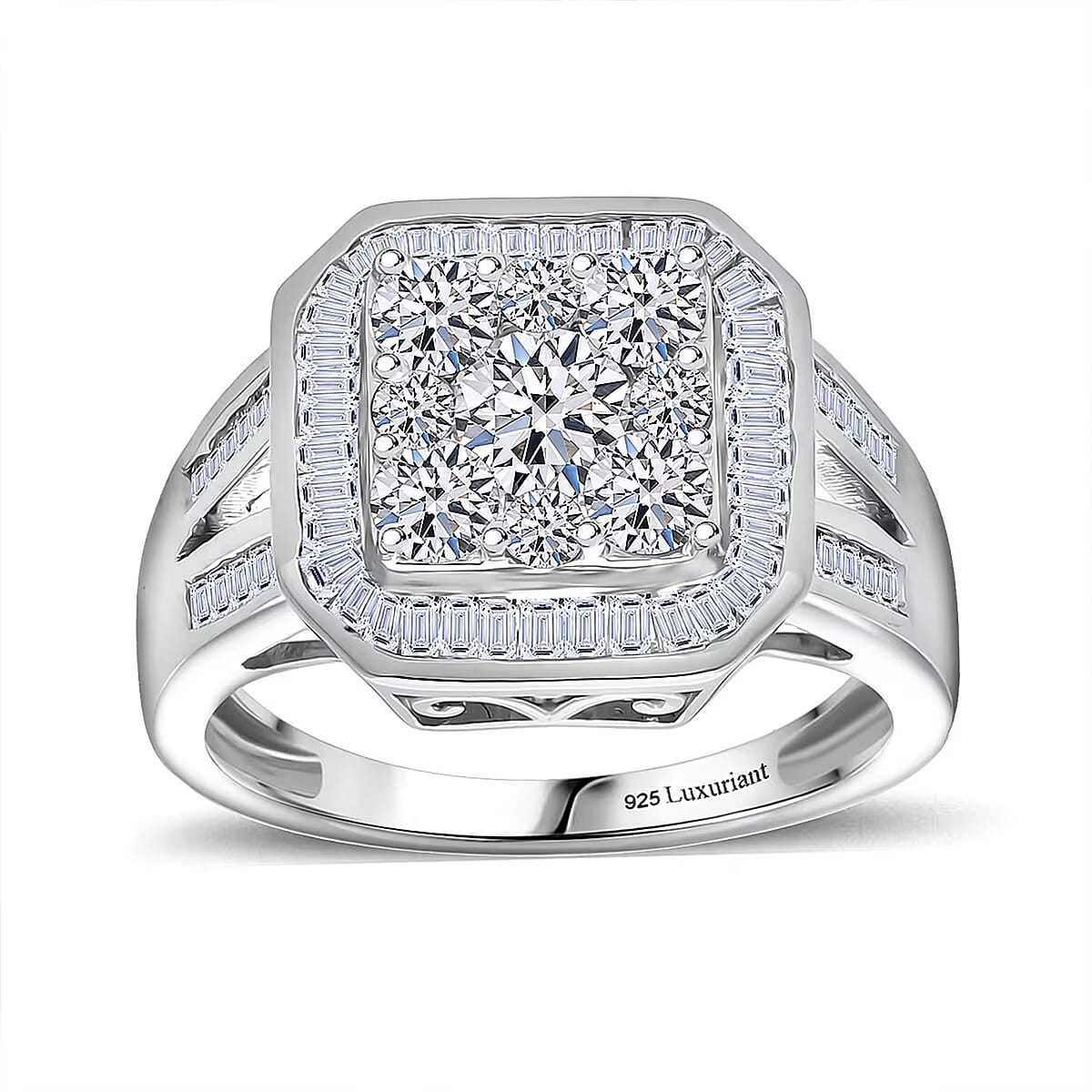 Indulge in modern luxury with this Luxuriant lab grown diamond ring in sterling silver. The architectural design captures fashion-forward sophistication and brilliant clarity. You will notice how this geometric ring becomes your statement piece for social occasions.