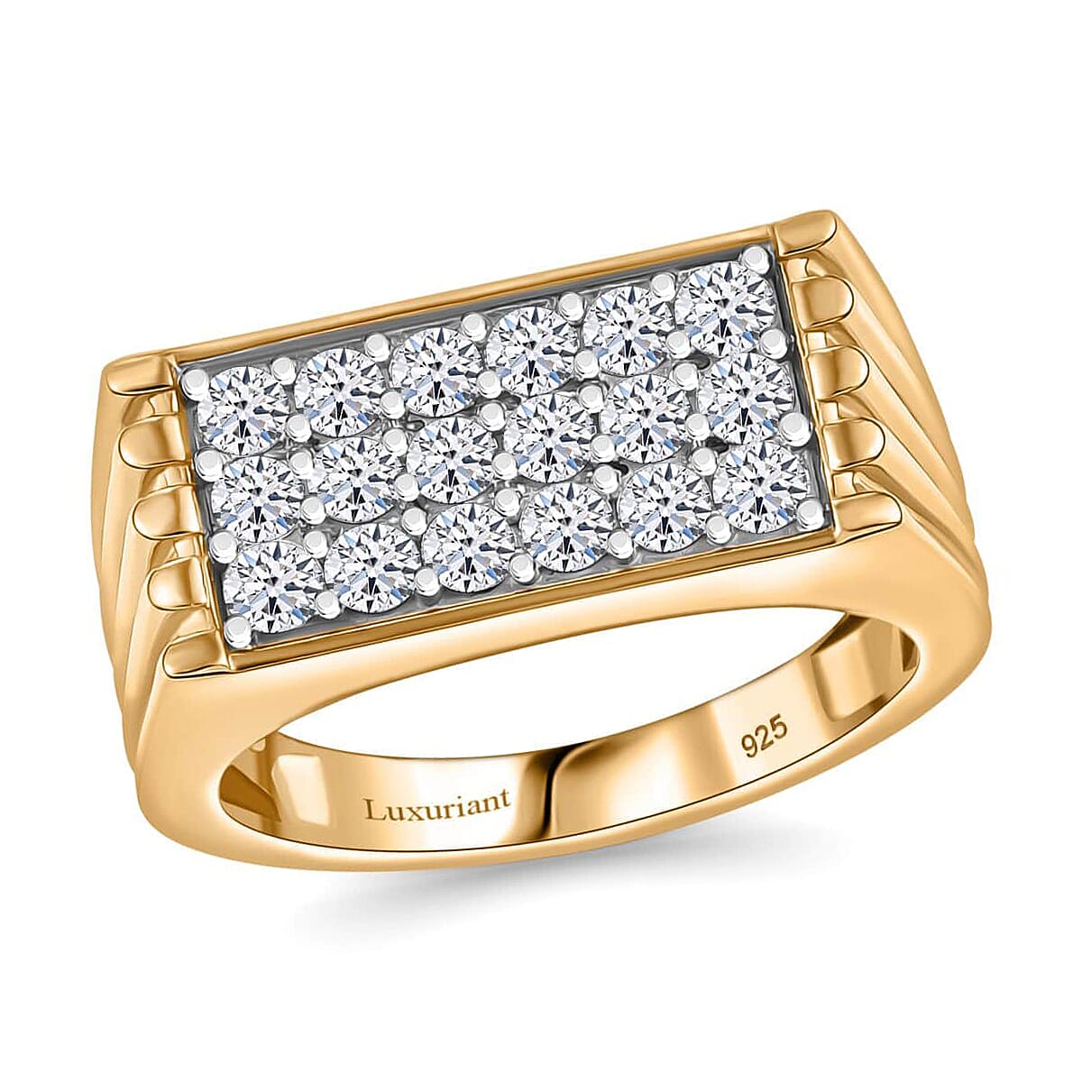 Luxuriant Lab Grown Diamond (G-H, SI) Men's Ring in 18K Vermeil YG Over Sterling Silver (Size 10.0) 1.00 ctw