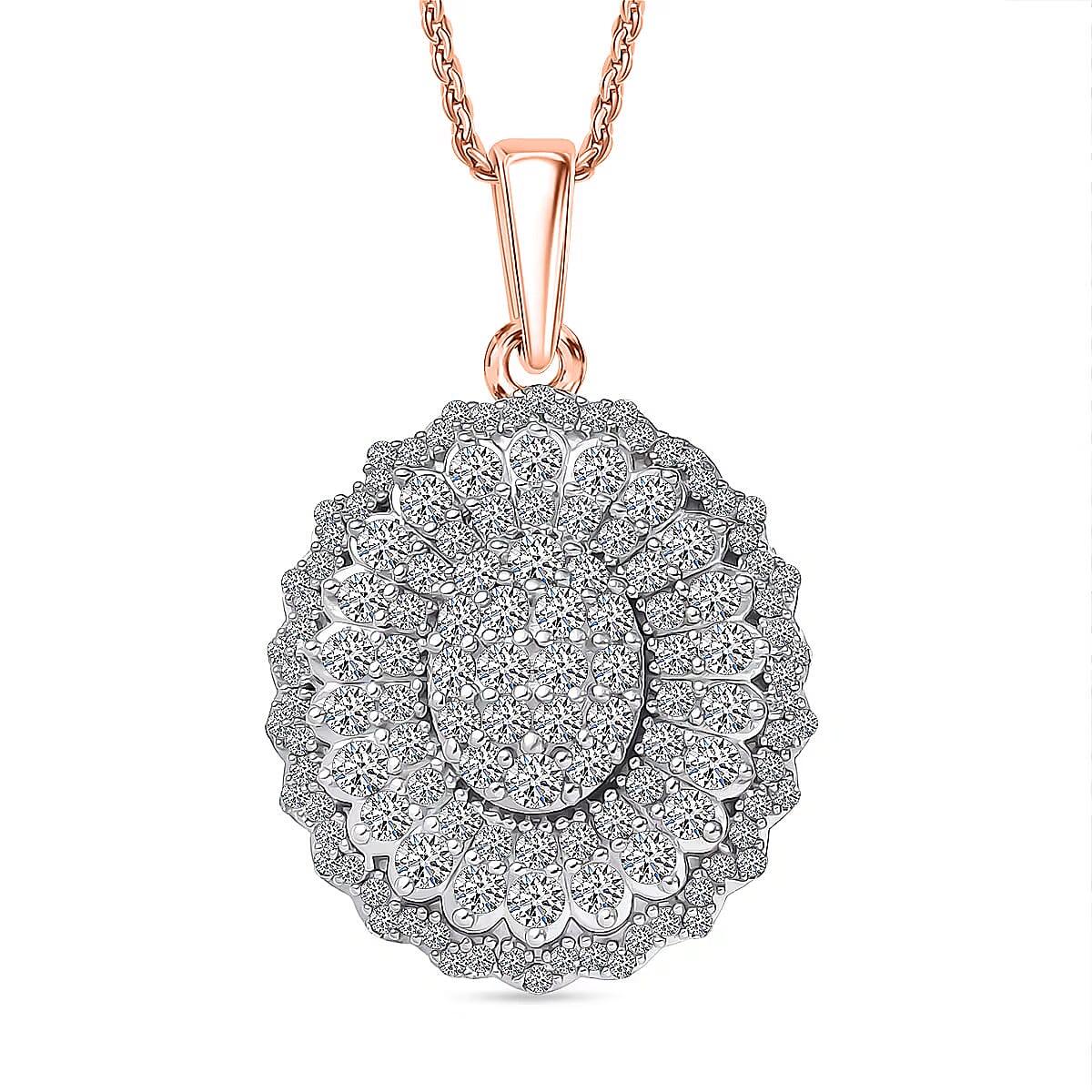 Luxuriant Lab Grown Diamond G-H, SI Pendant Necklace (20 Inches) in 18K Vermeil RG Over Sterling Silver 1.00 ctw