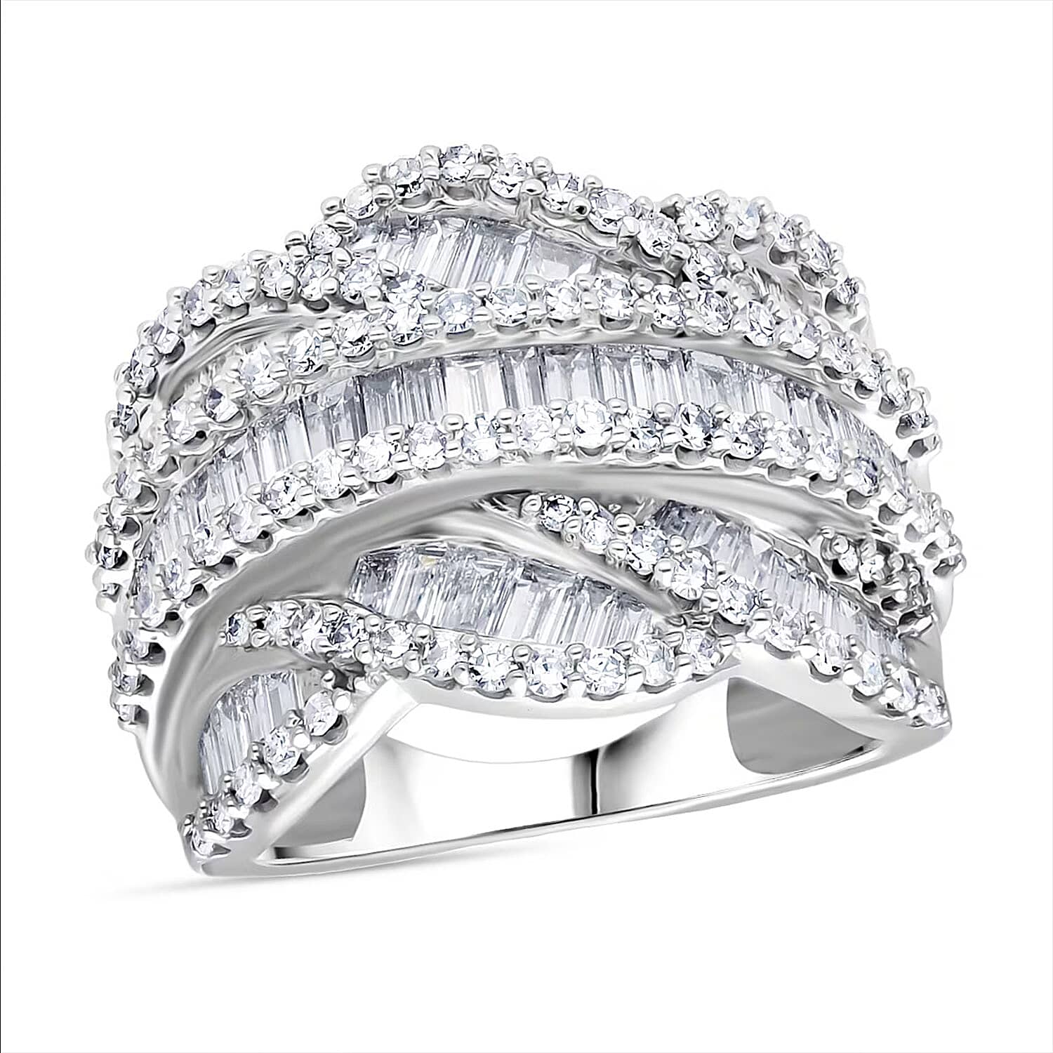 Luxuriant Lab Grown Diamond (G-H, SI) Waves Ring in Rhodium Over Sterling Silver 3.00 ctw (Size 7.0)