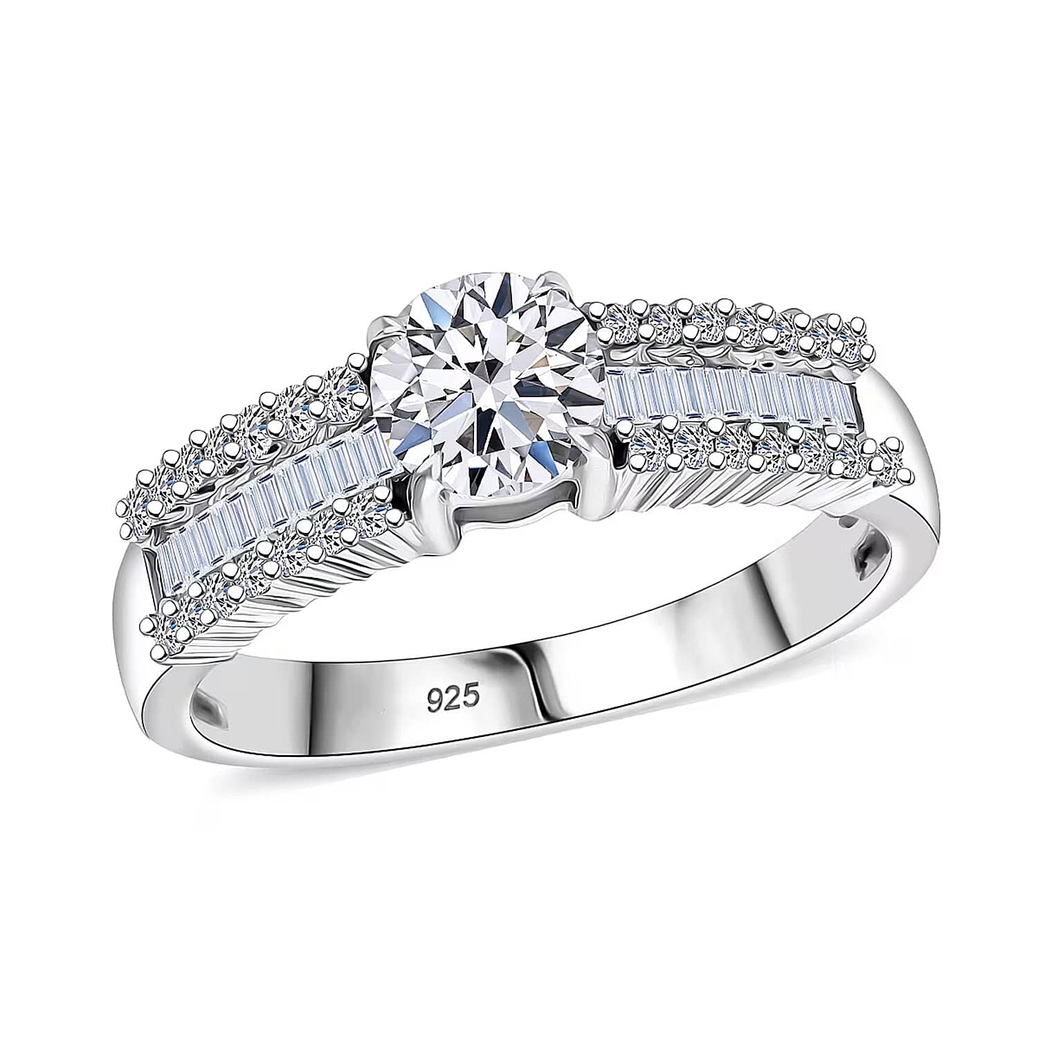 Showcase sophistication with the Luxuriant lab-grown diamond ring in sterling silver. This woman’s ring features baguette-cut diamonds in a sleek channel setting. You’ll love how this sterling silver ring adds timeless luxury to your look.