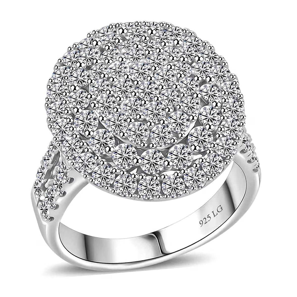 Embrace the future of fine jewelry with this lab grown diamond ring in silver. The bold setting of gems ensures dynamic sparkle. Ideal as a statement of ethical luxury, this cluster ring in silver is prestigious to adorn.