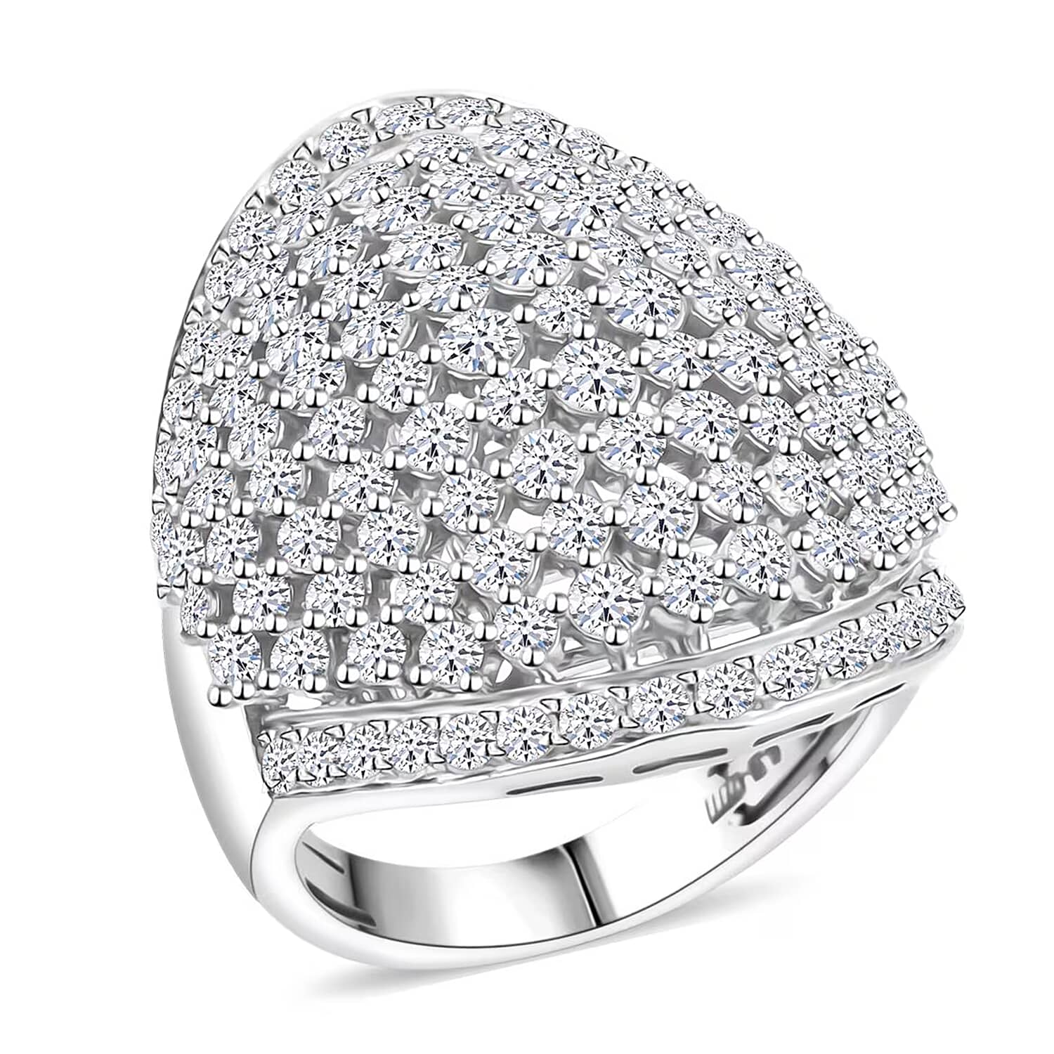 A. This ring features 129 round lab-grown diamonds for a rich, clustered sparkle.