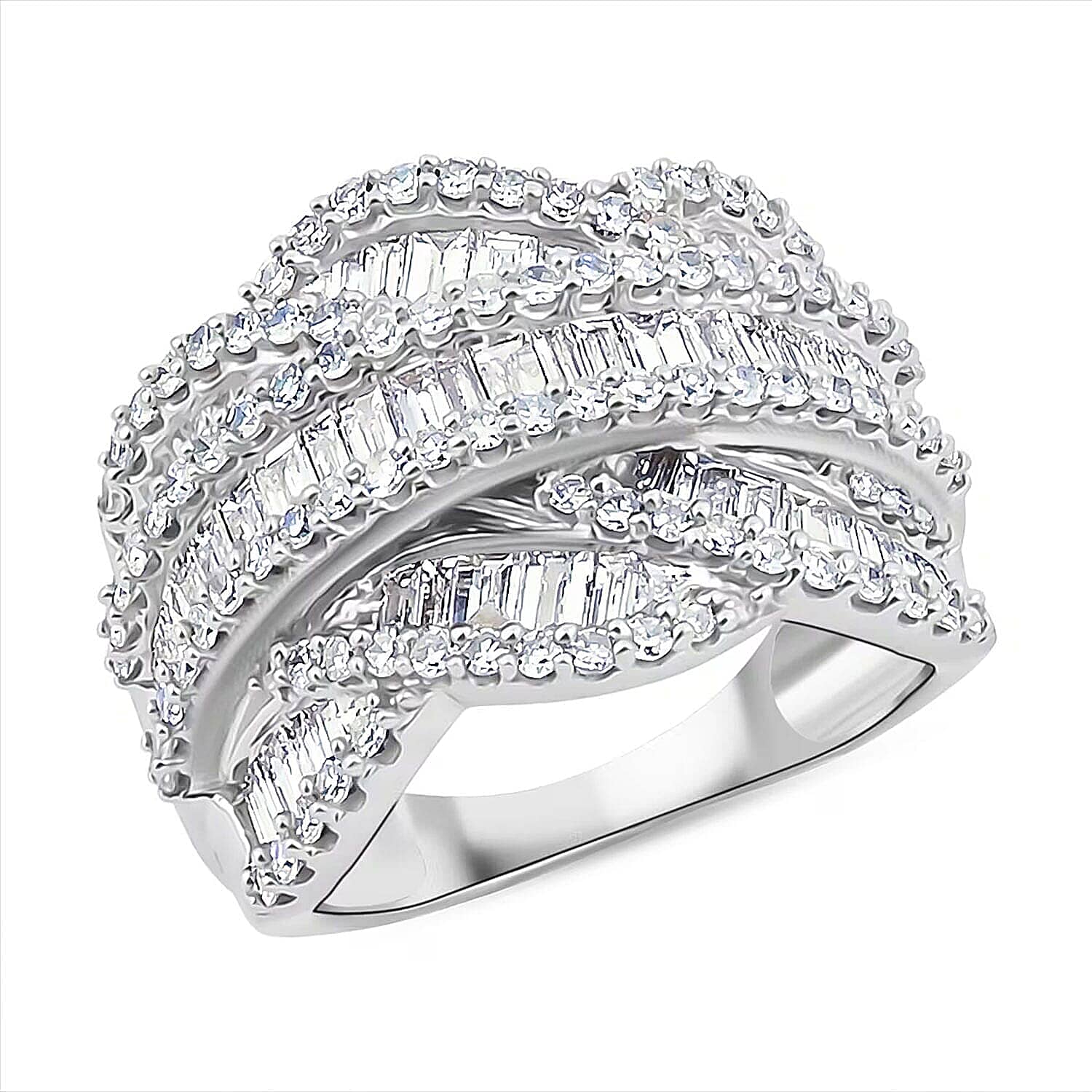 Luxuriant Lab Grown Diamond Ring in Rhodium Over Sterling Silver 3.00 ctw (Size 8.0)