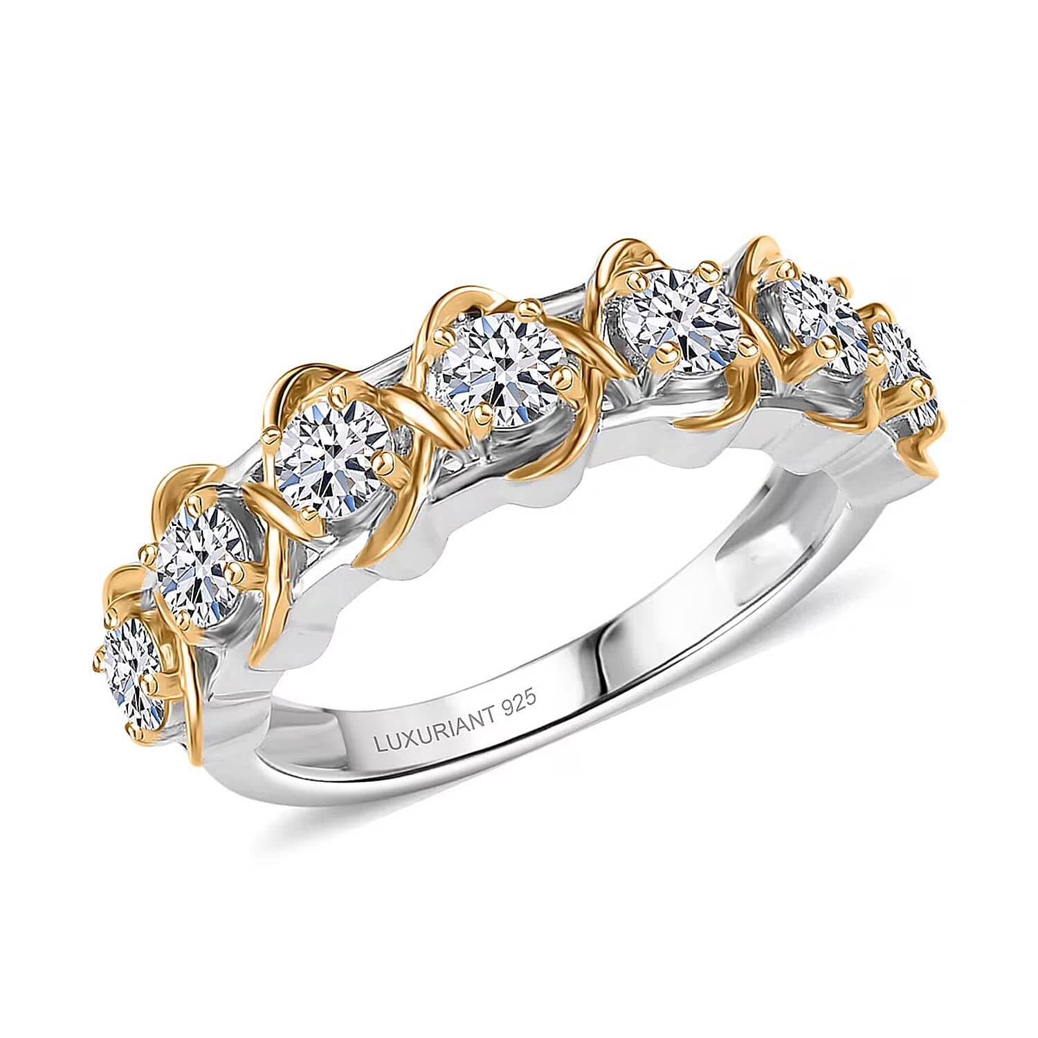 Luxuriant Lab Grown Diamond SI 1.00 ctw Infinity Spark Ring in 18K Vermeil YG and Rhodium Over Sterling Silver (Size 8.0)