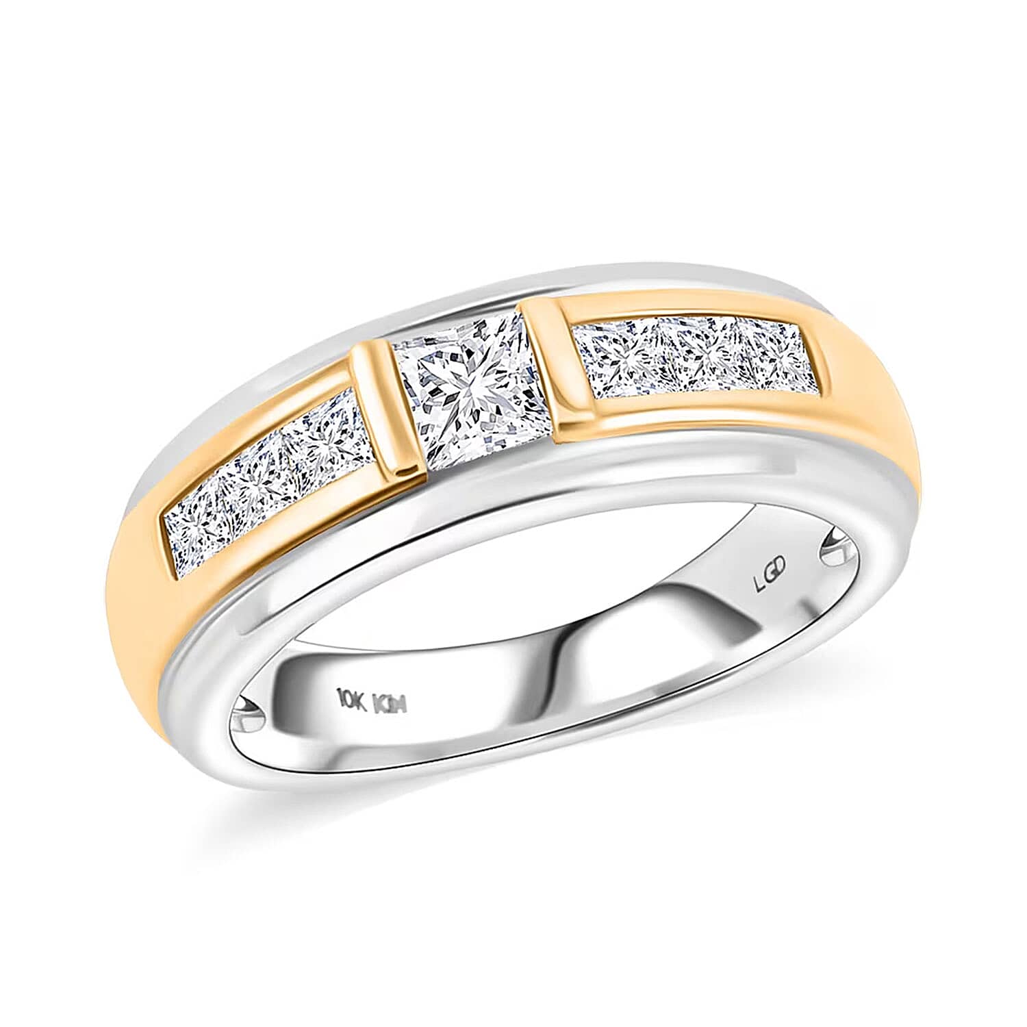 Command attention with this Luxuriant lab-grown diamond ring in 10k white and yellow gold. The two-tone ring combines white and yellow gold with sophisticated elegance. It projects confidence and distinction for the modern gentleman.