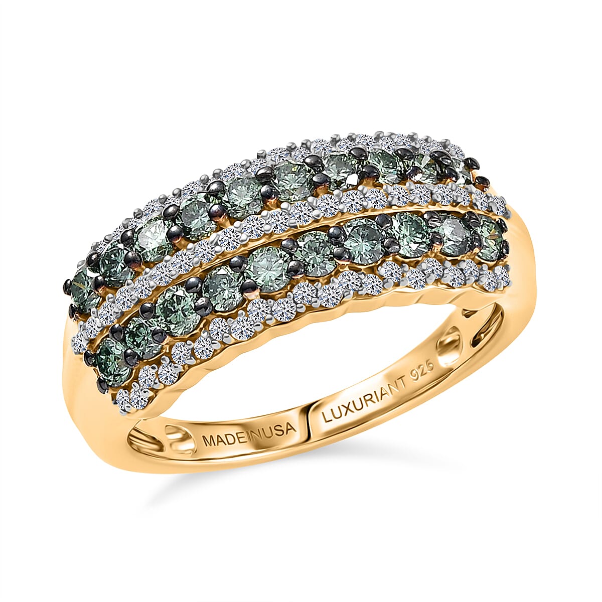 Luxuriant Lab Grown Green Diamond IR and Lab Grown Diamond SI 1.00 ctw Green Symphony Band Ring in 18K Vermeil Yellow Gold Over Sterling Silver (Size 7.0)