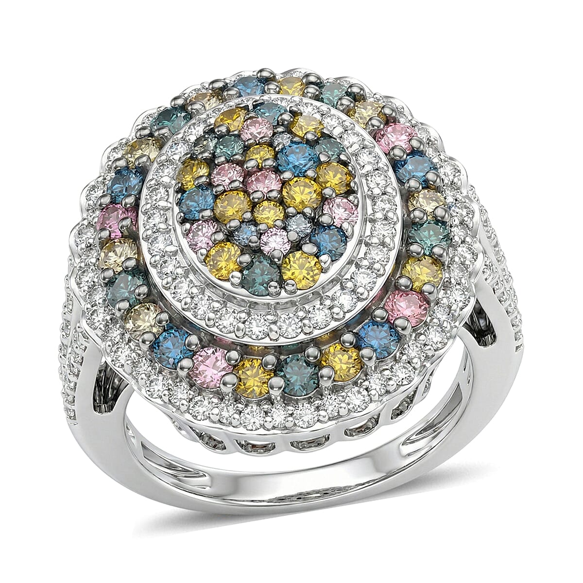 Luxuriant Lab Grown Multi Diamond (IR) (SI) 2.00 ctw Kaleidoscope Ring in Rhodium Over Sterling Silver (Size 10.0)