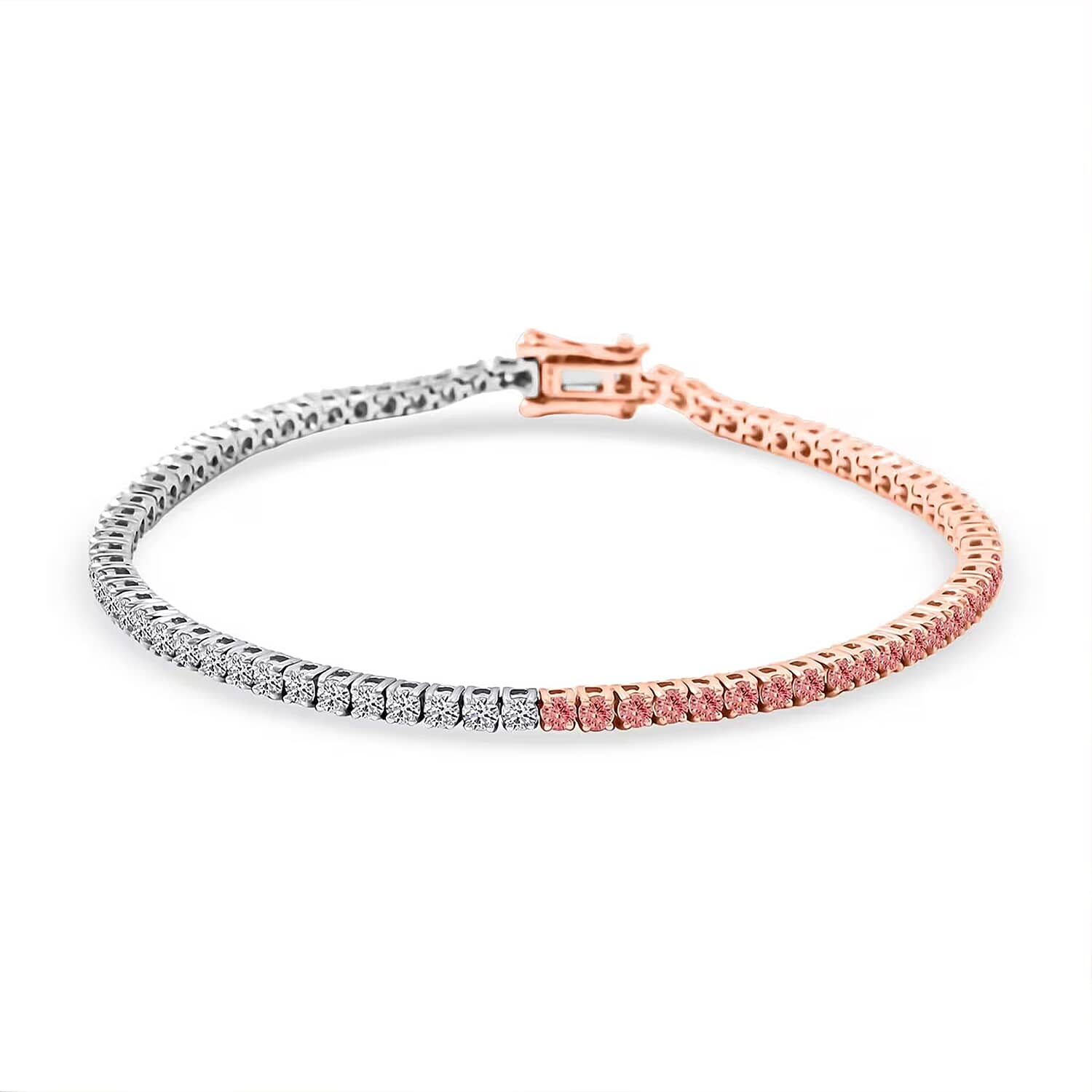 Luxuriant Lab Grown Pink Diamond (IR), Lab Grown Diamond 3.15 ctw Bracelet in 14K White and Rose Gold (7.25 In) 7.71 Grams
