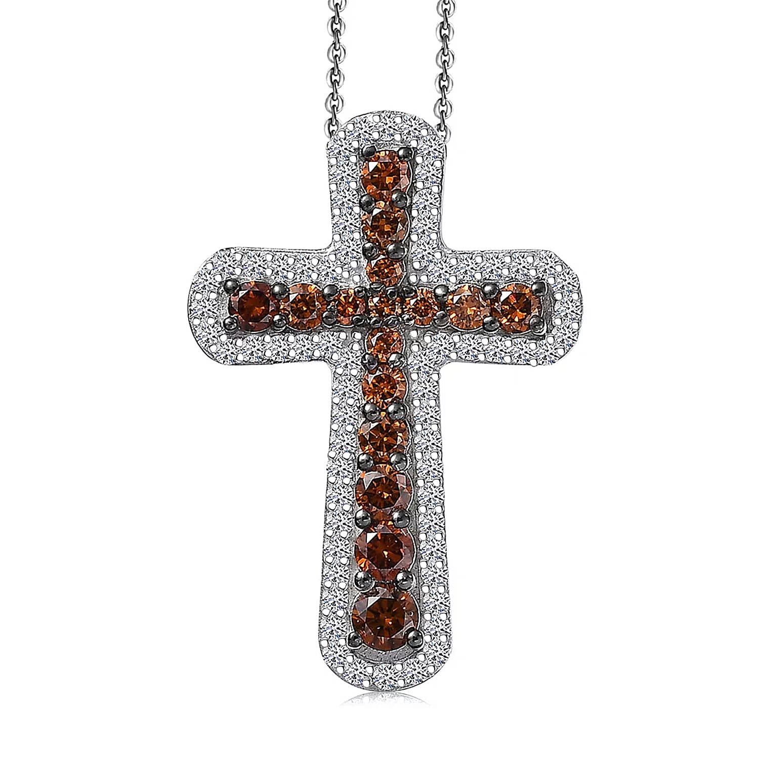 Luxuriant Lab Grown Red Diamond (IR) and Lab Grown Diamond 1.00 ctw Eternal Rouge Cross Pendant Necklace 20 Inches in Rhodium Over Sterling Silver