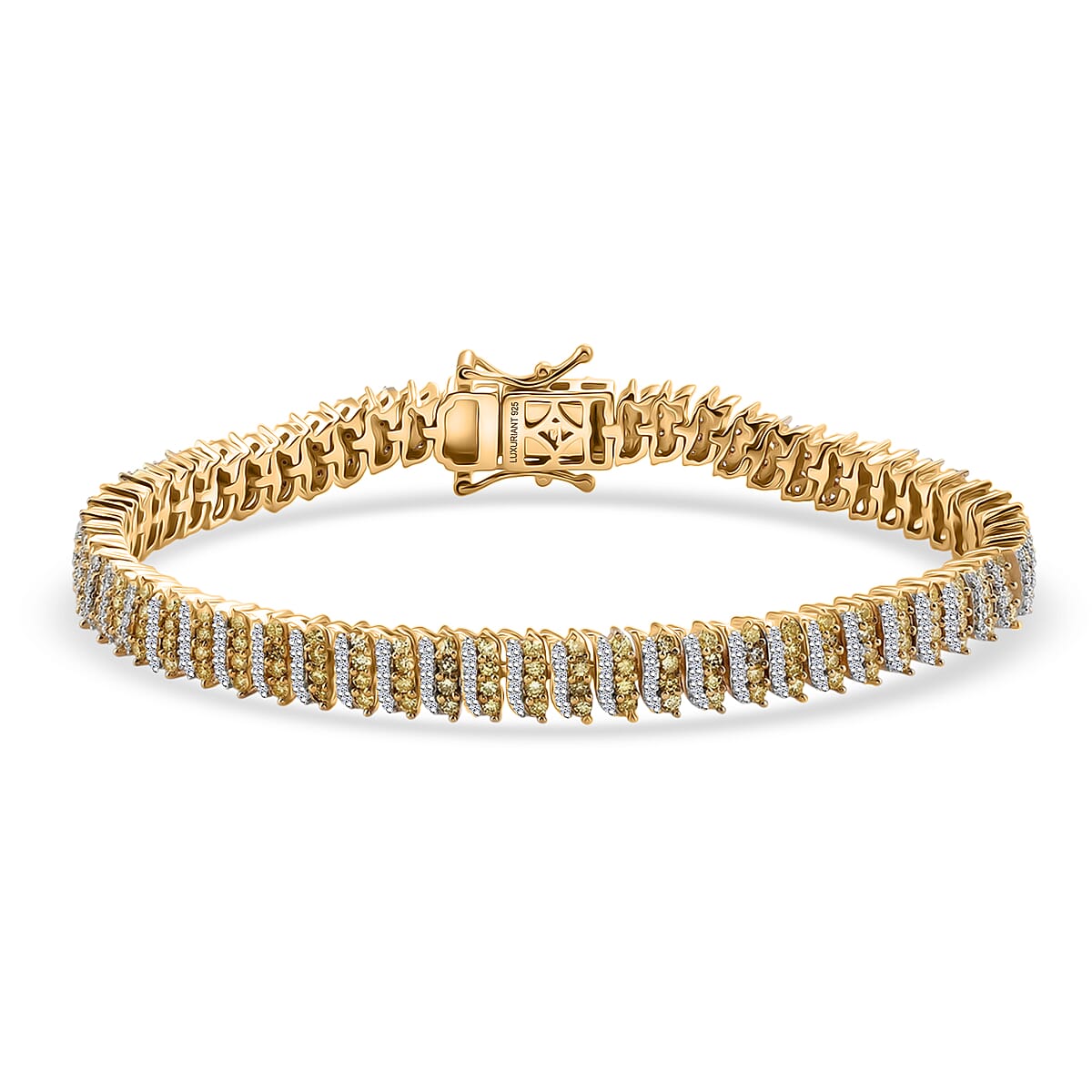 Luxuriant Lab Grown Yellow Diamond and Lab Grown Diamond SI 3.00 ctw Bracelet in 18K Vermeil Yellow Gold Over Sterling Silver (7.25 In)