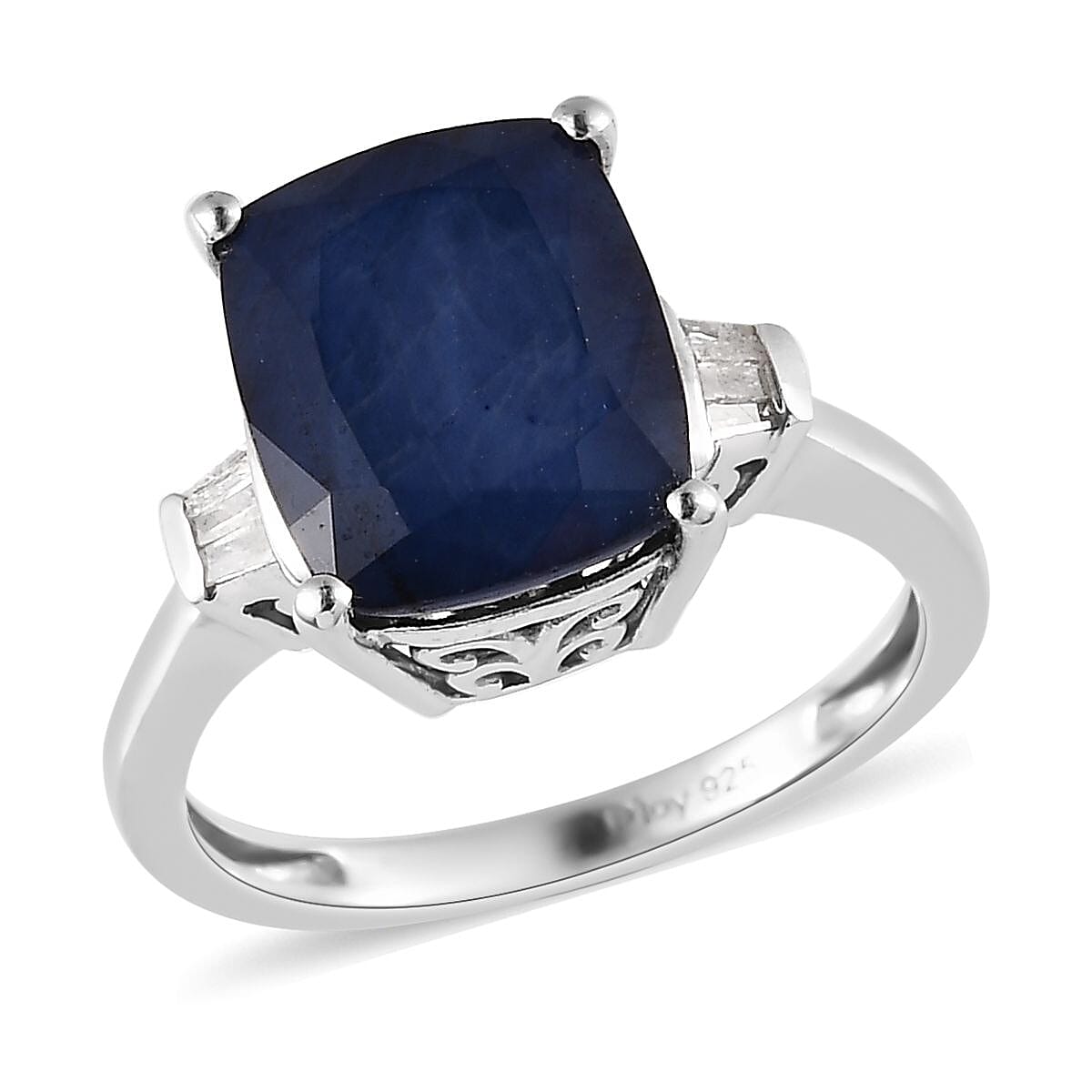 Madagascar Blue Sapphire (DF) and Diamond Ring in Platinum Over Sterling Silver 5.50 ctw