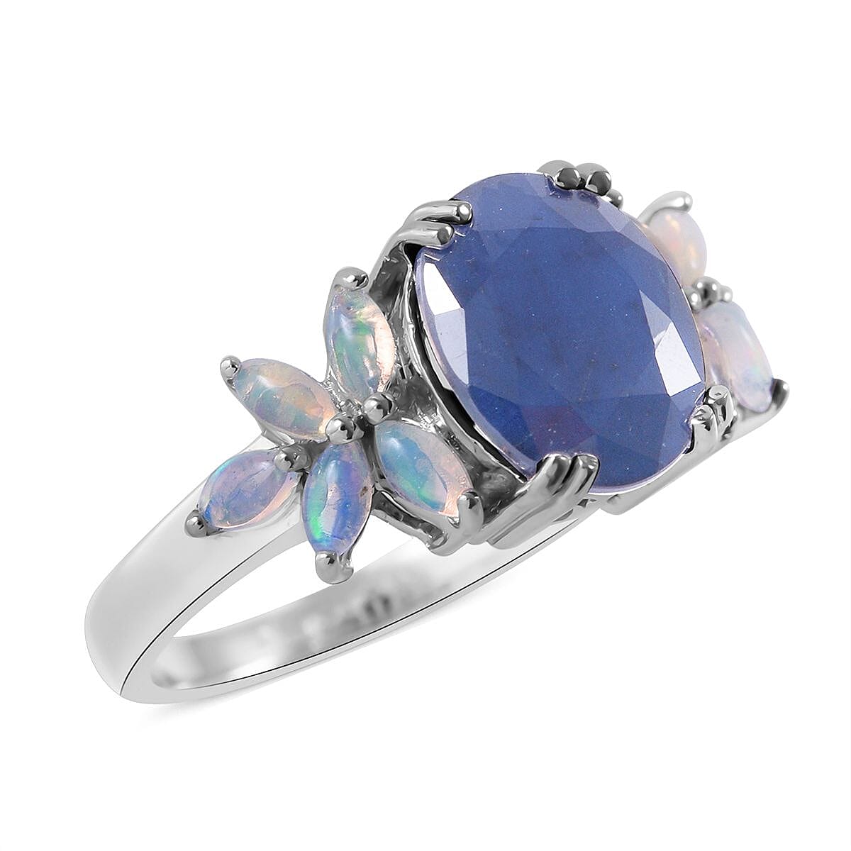 Madagascar Blue Sapphire (DF) and Ethiopian Welo Opal Ring in Platinum Over Sterling Silver (Size 8.0) 4.90 ctw