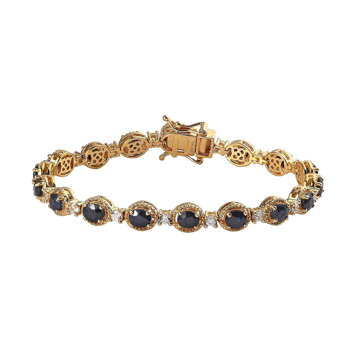 Madagascar Blue Sapphire (DF) and White Zircon Bracelet in Vermeil Yellow Gold Over Sterling Silver (7.25 In) 10.75 ctw