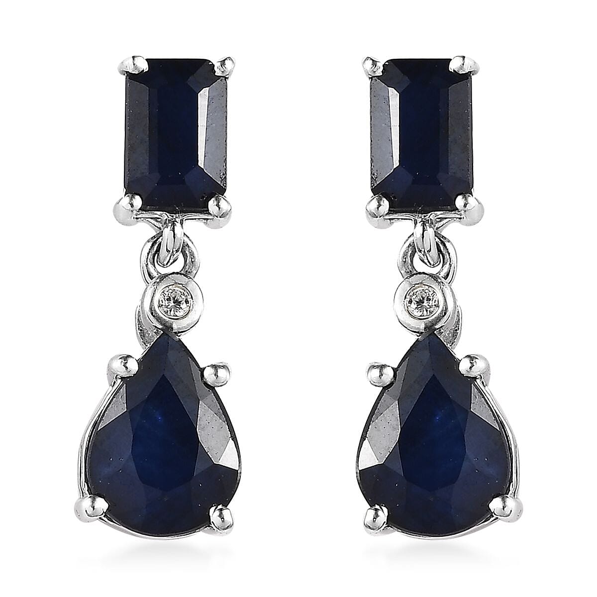 Madagascar Blue Sapphire (DF) and White Zircon Drop Earrings in Platinum Over Sterling Silver 3.90 ctw