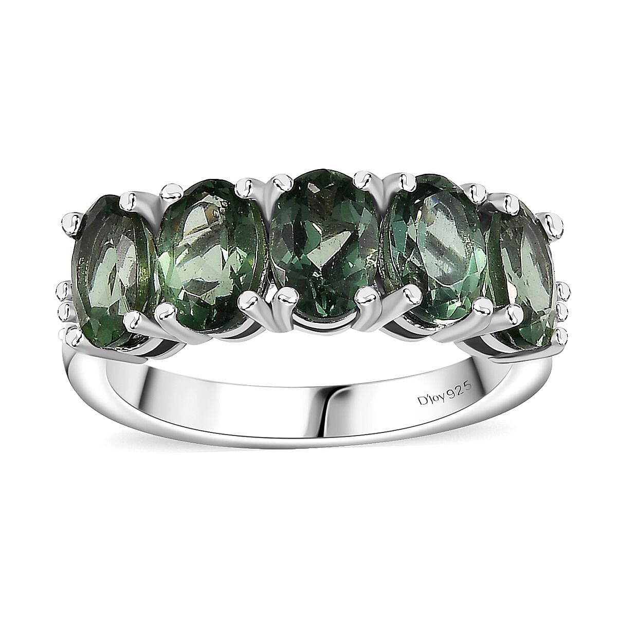 This Madagascar green apatite and diamond ring features a 5-stone design, symbolizing love, trust, friendship, loyalty, and commitment. The sterling silver ring is crafted for durability and versatile styling, perfect for casual and formal wear.