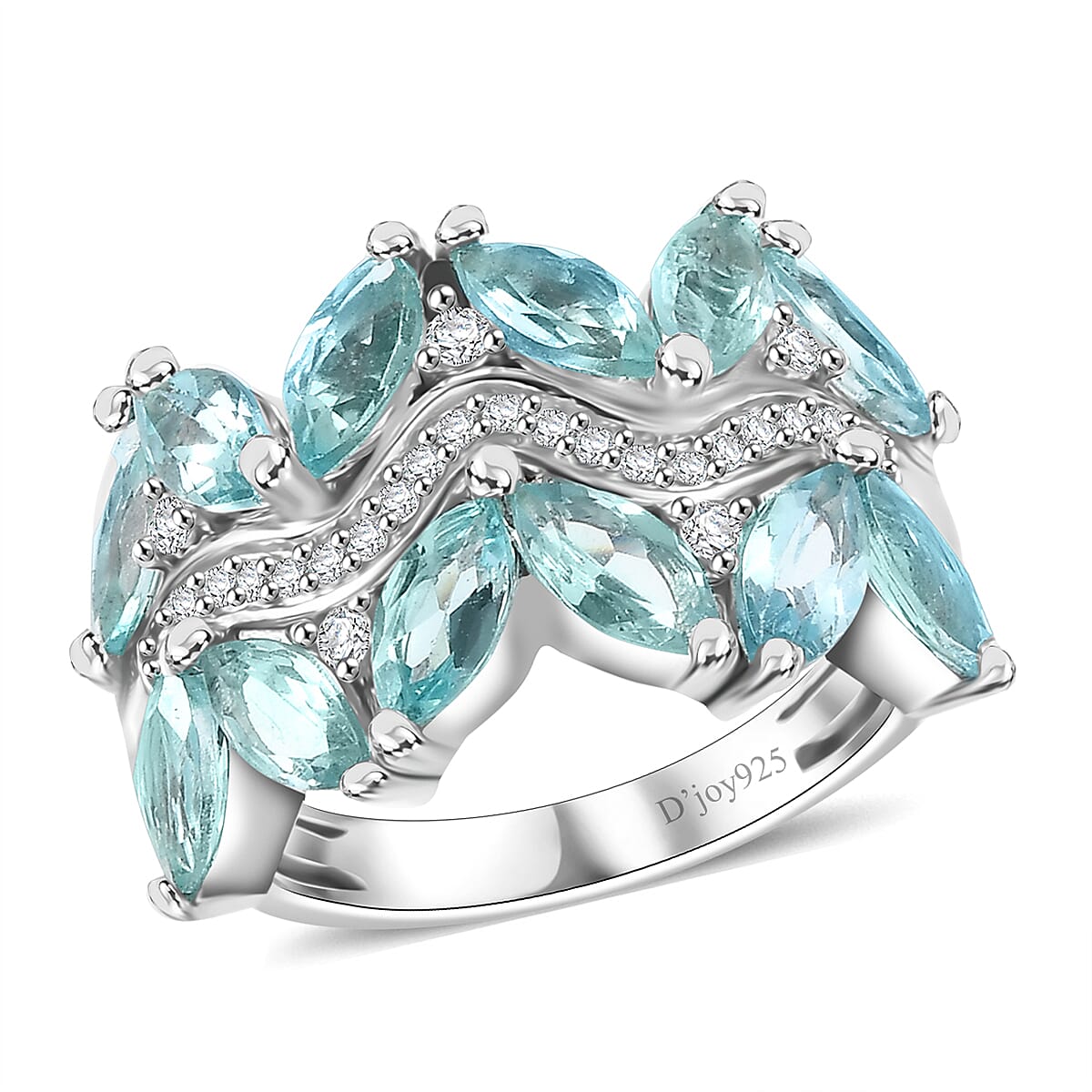 Madagascar Lagoon Apatite and Moissanite 3.25 ctw Waves Ring in Rhodium Over Sterling Silver (Size 9.0)
