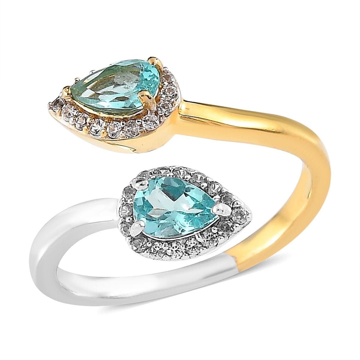 Madagascar Paraiba and Green Apatite, White Zircon Bypass Ring in Vermeil YG and Platinum Over Sterling Silver (Size 9.0) 1.15 ctw