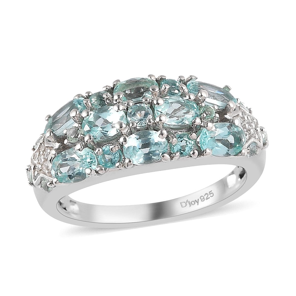 Madagascar Paraiba Apatite and White Zircon Cluster Ring in Platinum Over Sterling Silver (Size 8.0) 2.25 ctw
