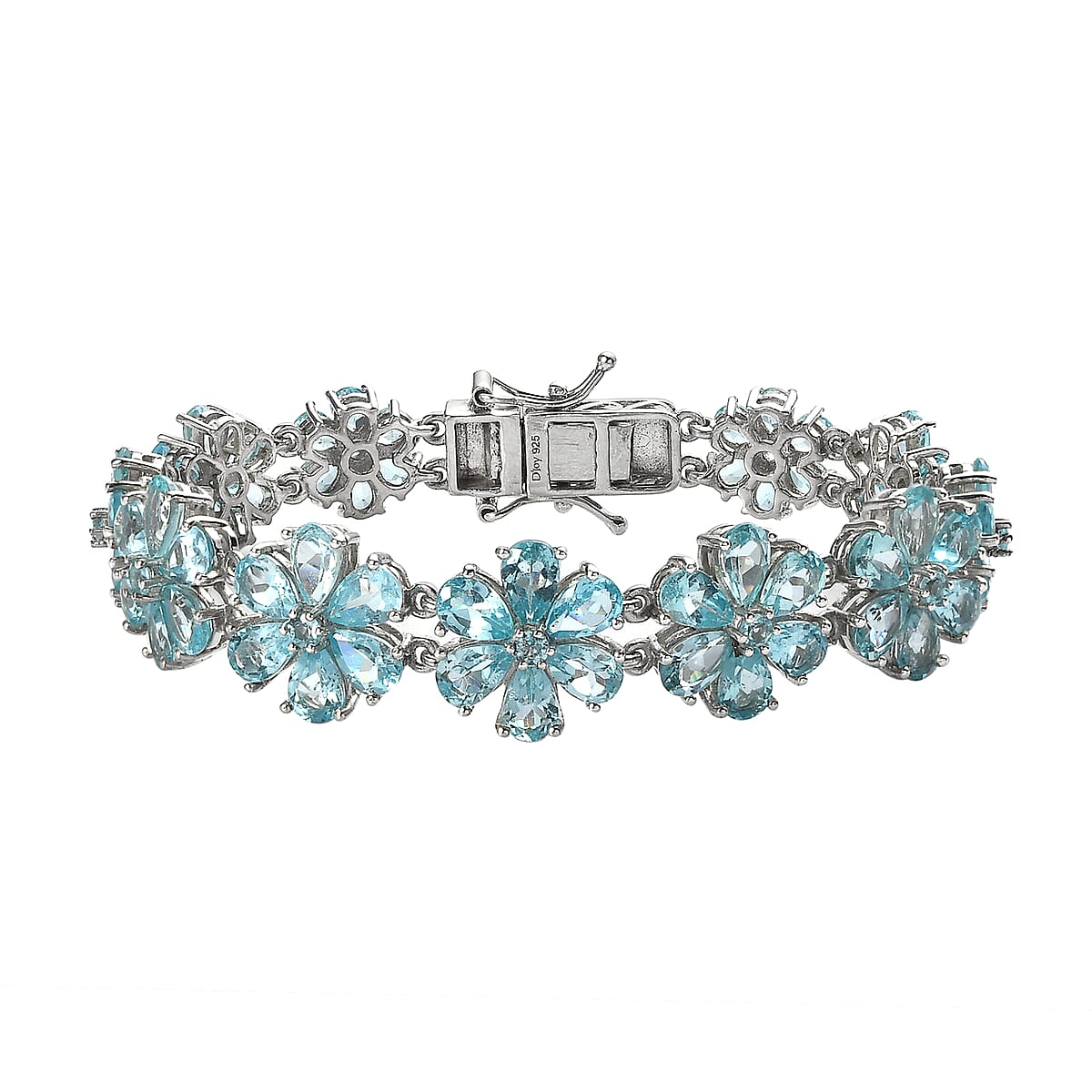 Madagascar Paraiba Apatite Floral Bracelet in Platinum Over Sterling Silver (6.50 In) 20.75 ctw