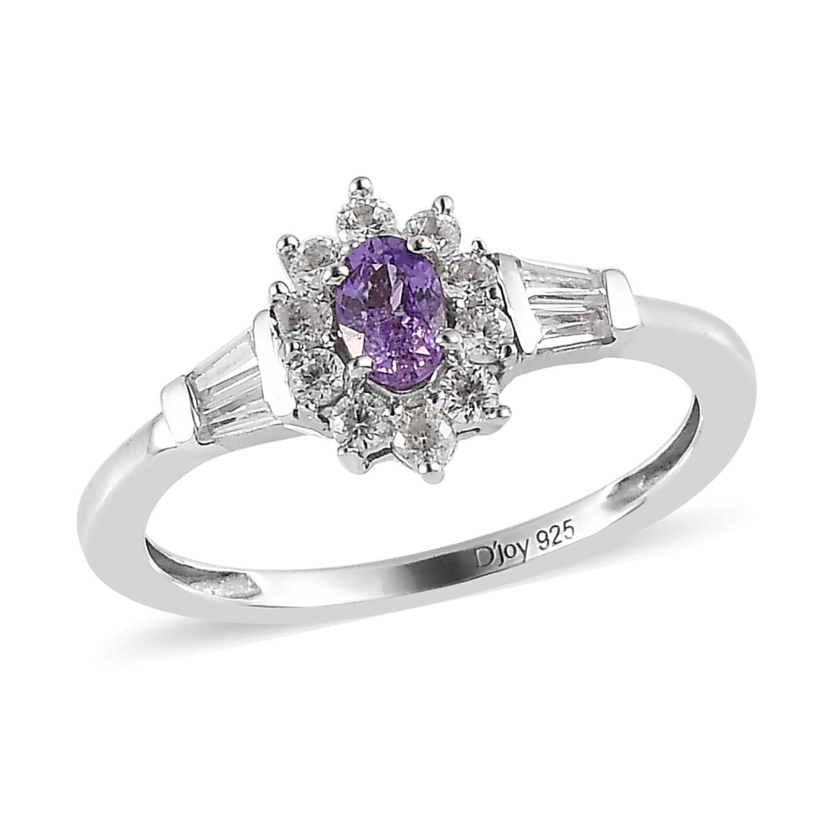 Madagascar Purple Sapphire and Natural White Zircon Sunburst Ring in Platinum Over Sterling Silver 0.65 ctw