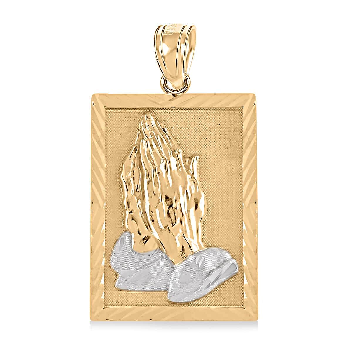 Made in America 10K Yellow and White Gold 25.40x41.05mm Religious Praying Hands Pendant 8.90 Grams