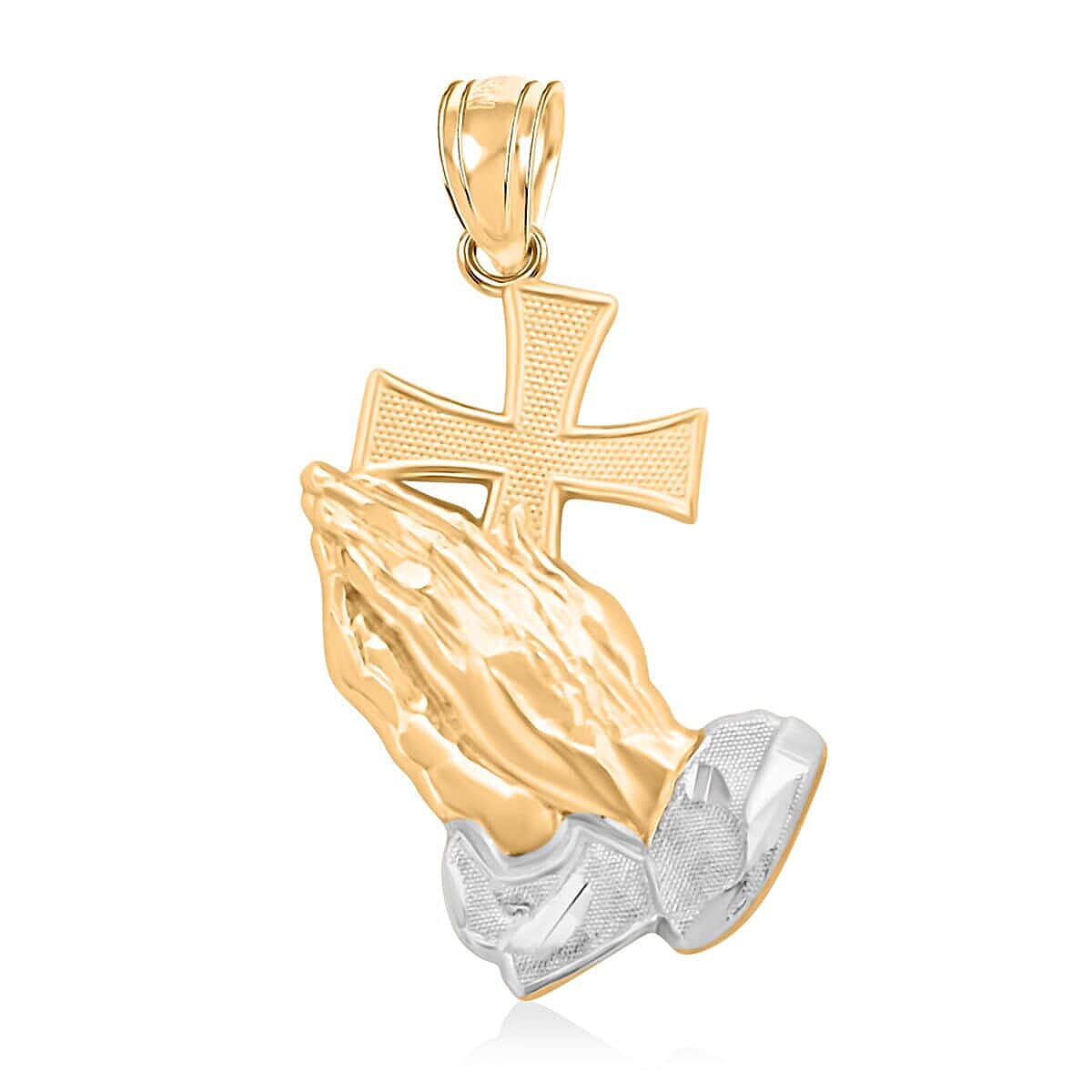 Embrace the divine essence of faith and fashion with our 10K yellow and white gold praying hands pendant, an exquisite portrayal of devotion that will undoubtedly captivate hearts and inspire souls. Take a step towards spiritual splendor and timeless beauty - this pendant awaits its rightful place in your collection!