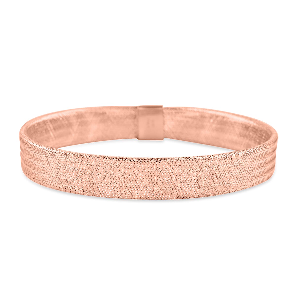 Maestro Gold Collection Italian 10K Rose Gold Mesh Flat Omega Stretch Bracelet 2.10 Grams
