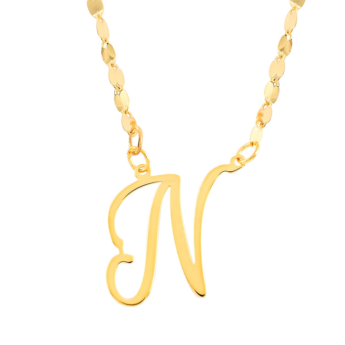 Personalize your elegance with our exquisite initial necklace, a symphony of smooth metal craftsmanship featuring your chosen alphabet. Each piece, glowing in 10K yellow gold and hanging gracefully on an 18-inch necklace, is a testament to individuality and style. The spring clasp ensures a secure and comfortable fit, making this piece not just an accessory but a statement. Whether for yourself or as a thoughtful gift, this necklace is a timeless piece that promises to be as unique as you are.