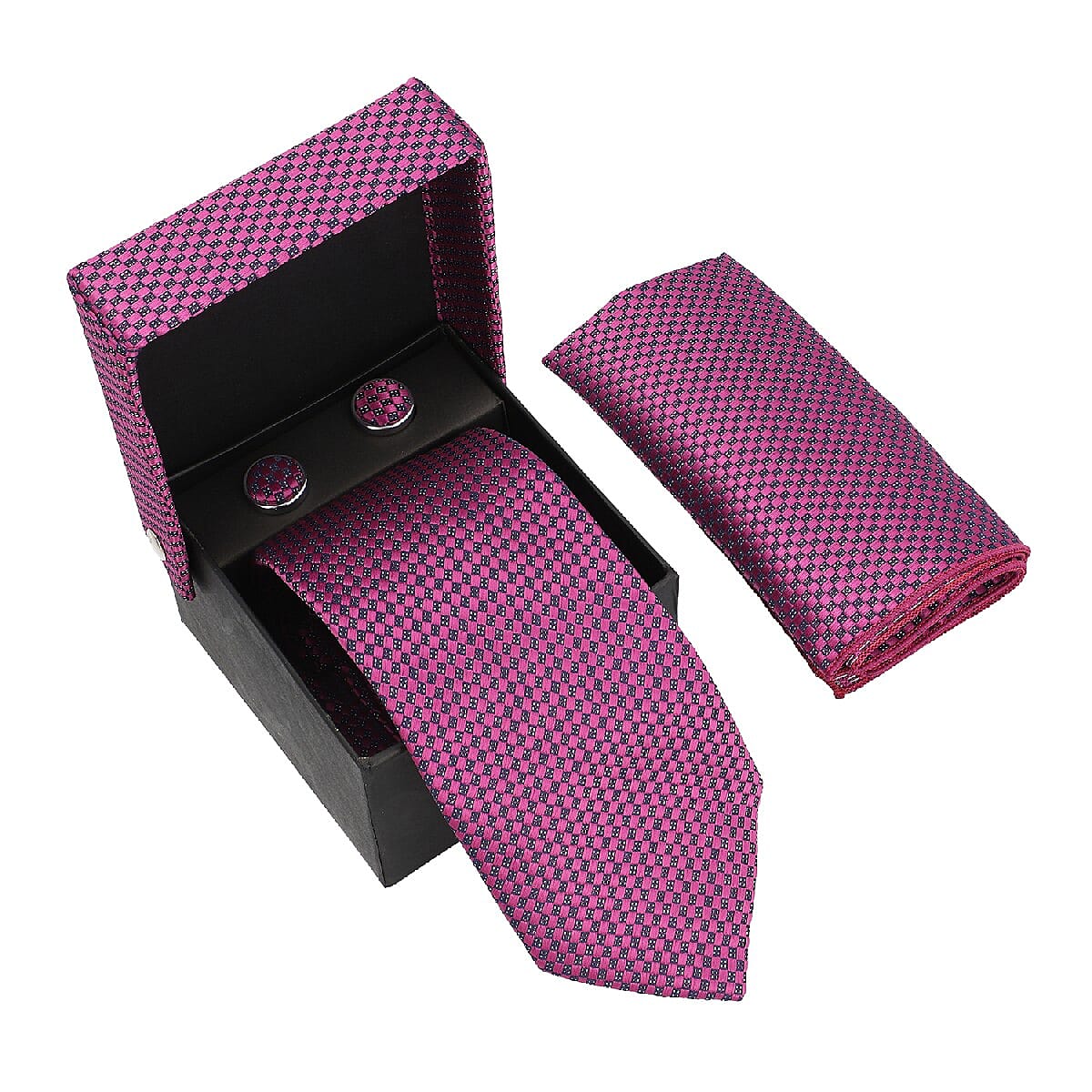 Magenta Polyester Set of Tie, Cufflinks and Pocket Square | Men's Accessory Set | Men's Gift Set