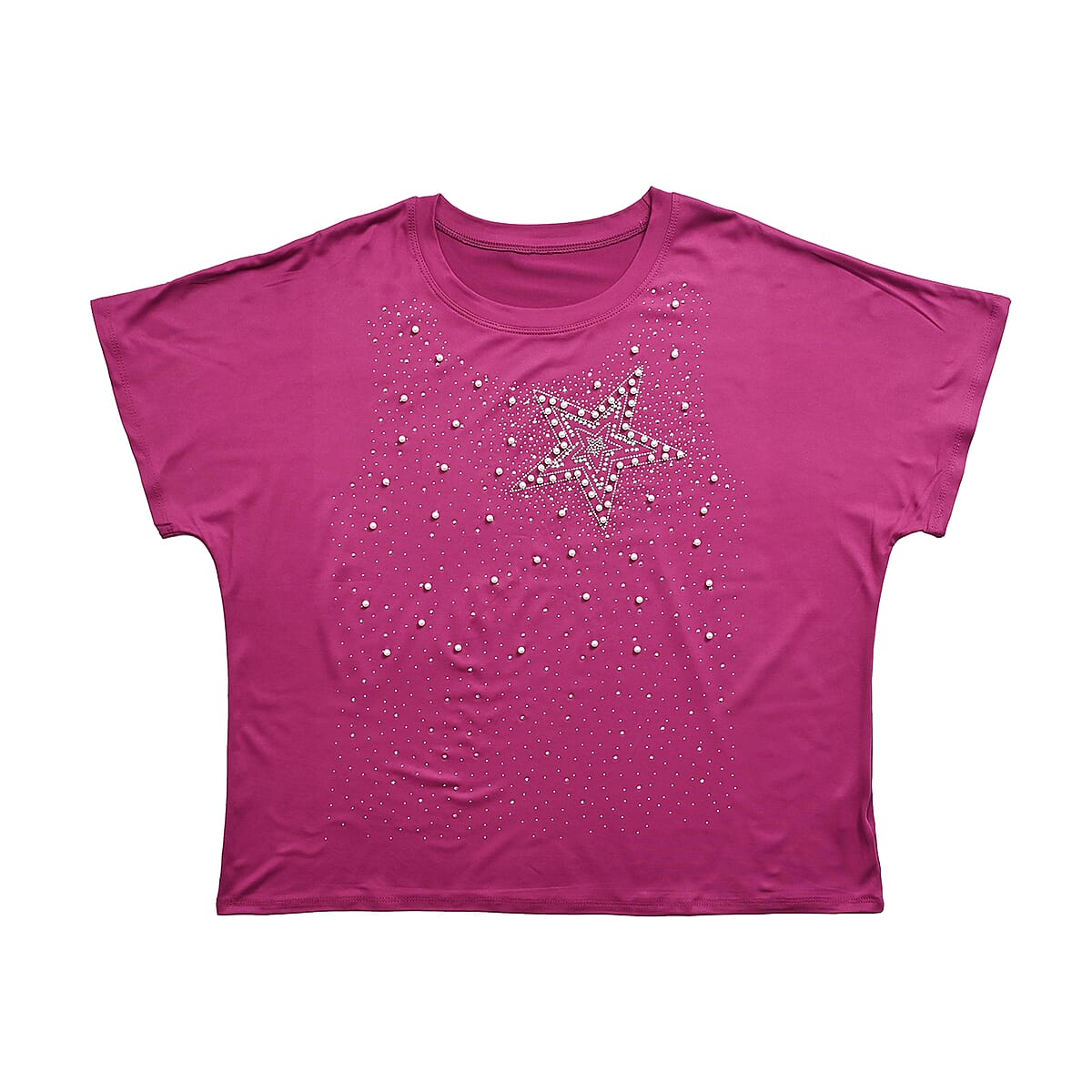 Magenta Star Crystal Bejeweled Bat Wing Short Sleeve Shirt - One Size Fits Most