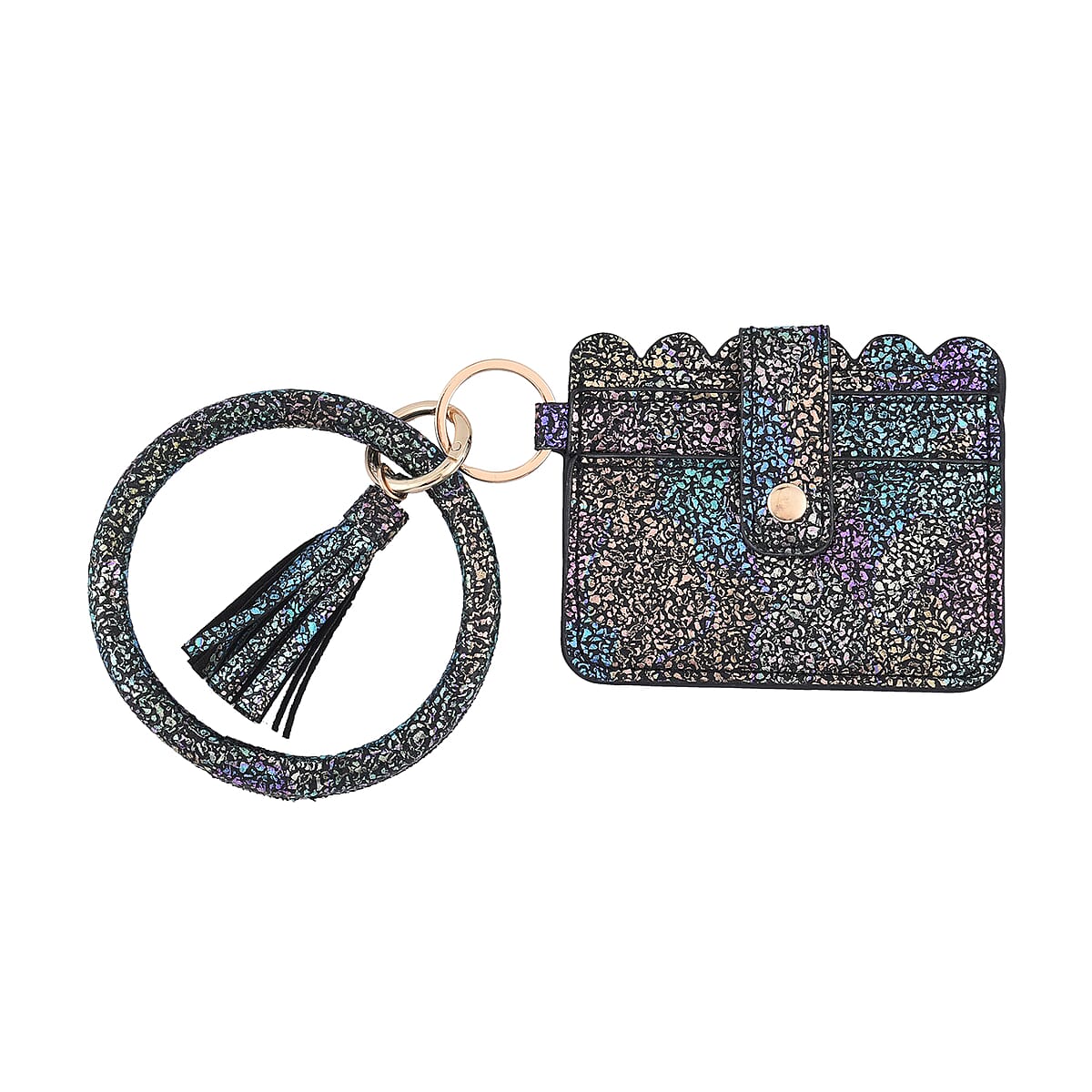 Magic Color Faux Leather Cardholder Bangle Key Ring with Tassels