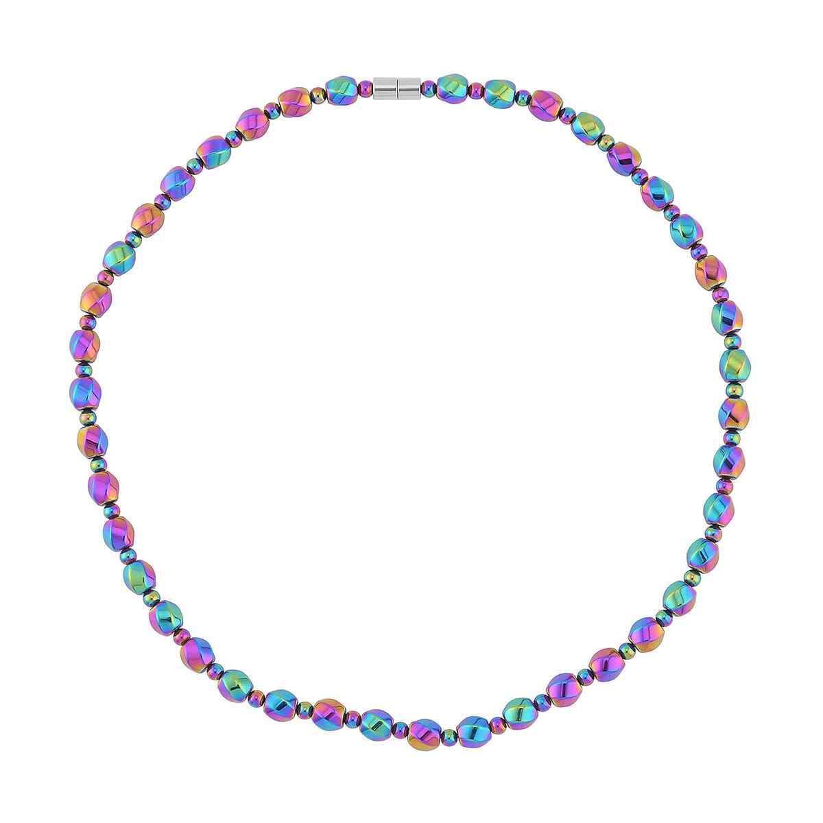 Look distinctive every day by wearing this magic color Hematite beaded necklace. This single-strand necklace in multiple magic tones features hematite beads set in a symmetrical pattern. This 20 inches necklace is perfect for adorning your neckline at casual events or gatherings. In addition, this necklace gives a rainbow look to the neckline.