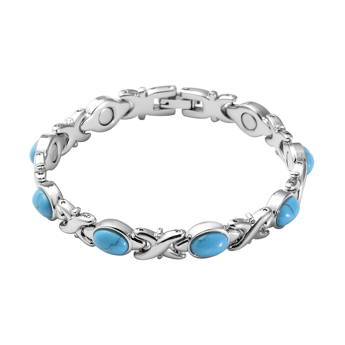 Magnetic By Design Blue Howlite Bracelet in Silvertone (8.00 In) 15.00 ctw