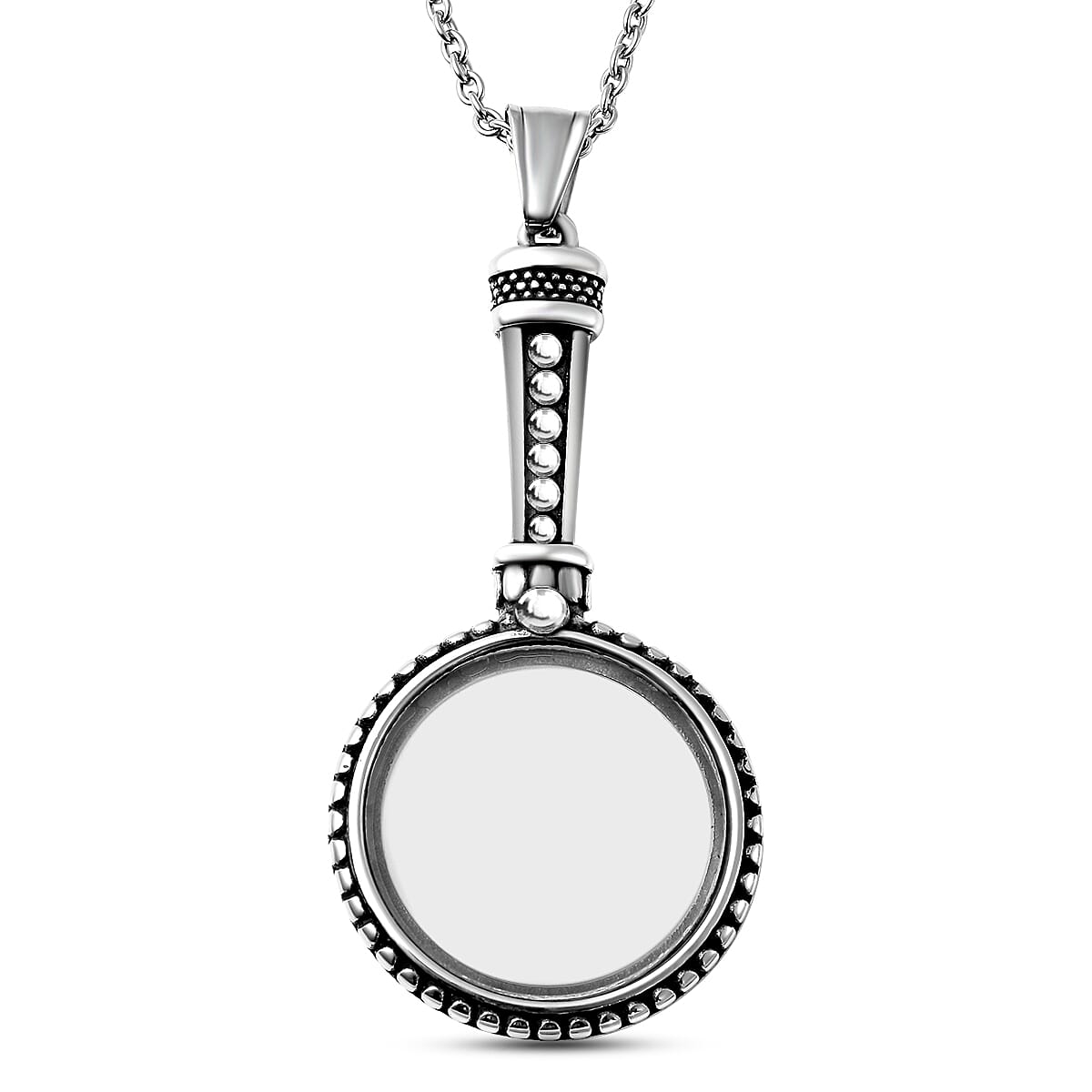 Magnifying Glass Pendant Necklace (24 in) in Stainless Steel