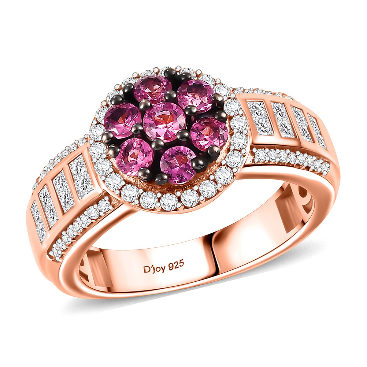 Mahenge Spinel and White Zircon 1.85 ctw Art Deco Ring in 18K Vermeil Rose Gold Over Sterling Silver (Size 8.0)