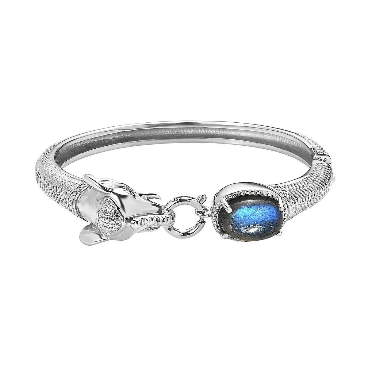 This gemstone bangle bracelet in 316L stainless steel is inspired by the elephant design. The gem is securely set in a prong setting, featuring an oval gemstone coveted for its hue. Crafted with 316L stainless steel and a premium finish, the elephant bracelet has a spring ring clasp for secure wear.
