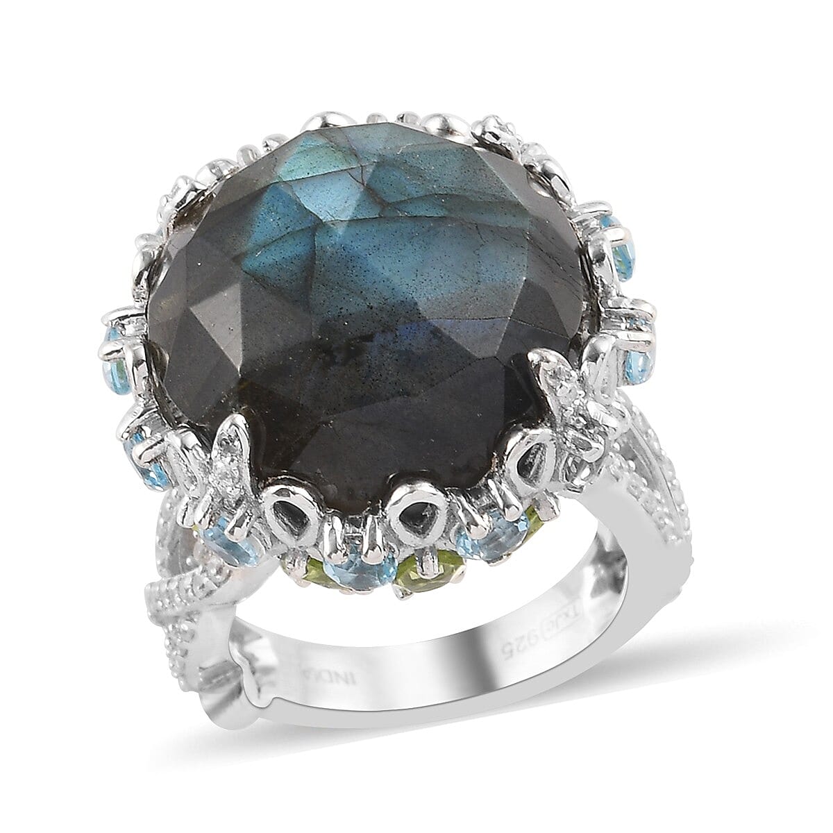 Malagasy Labradorite and Multi Gemstone Ring in Platinum Over Sterling Silver (Size 6.0) 8 Grams 26.00 ctw