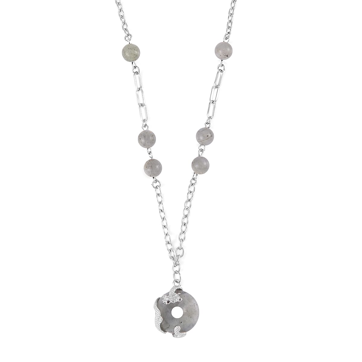 Malagasy Labradorite Dragon Pendant Necklace 20-22 Inches in Silvertone 18.00 ctw