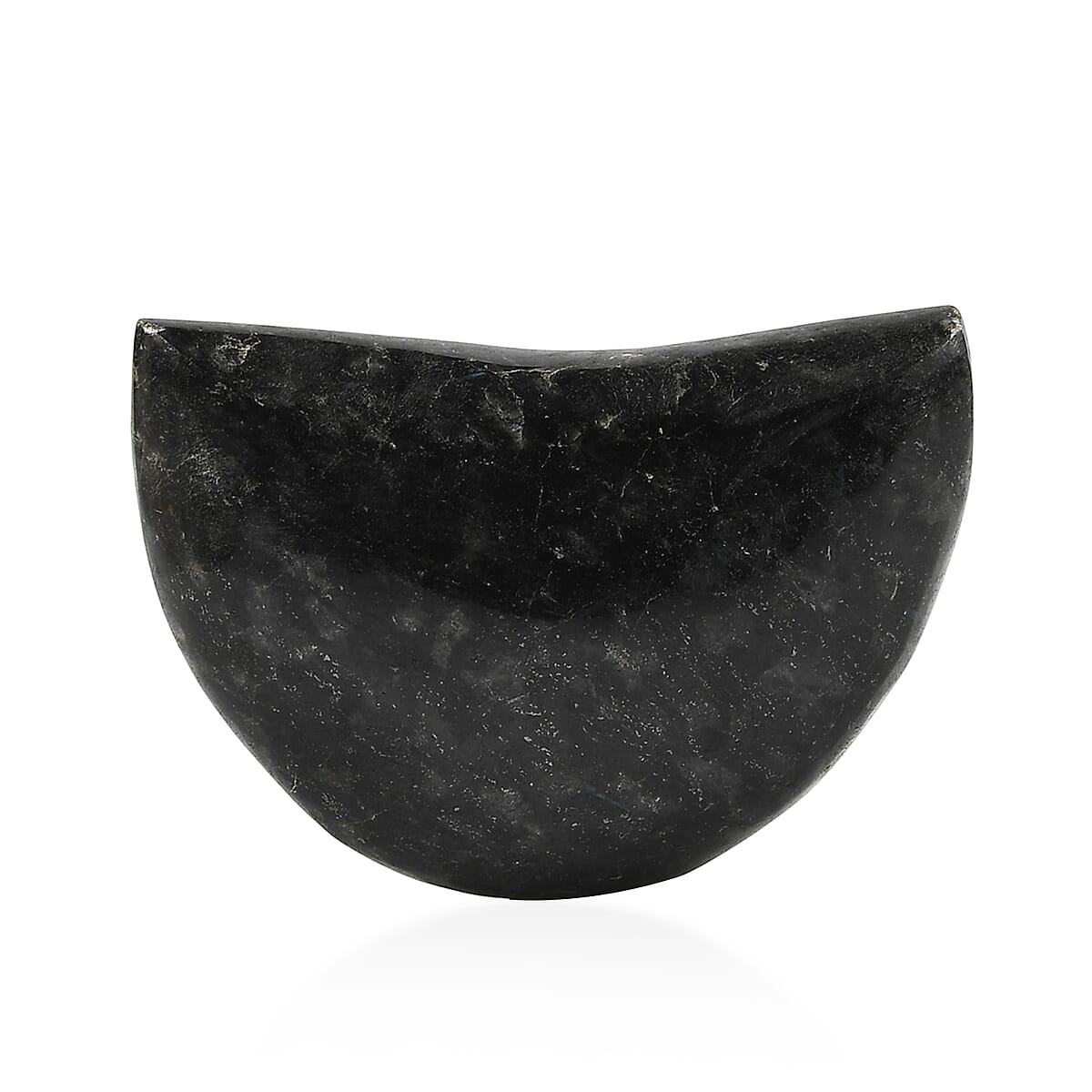 Shaped into a graceful moon-inspired form, this Malagasy labradorite piece reveals subtle flashes beneath its polished surface. Its flowing silhouette and natural depth create a refined decorative presence. Designed to enhance interiors with quiet intrigue and elegance.